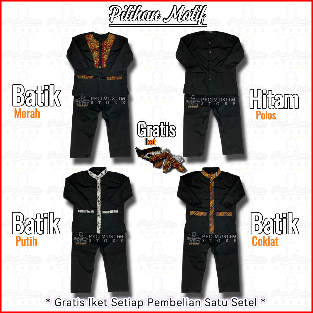 Setelan Hitam Polos, Setelan Batik Merah, Setelan BatikPutih, Setelan Batik Coklat, Baju Hitam Polos, Baju Batik Merah, Baju Batik Putih, Baju Batik Coklat, Celana Pangsi, Iket All Size, Kain Dodot
