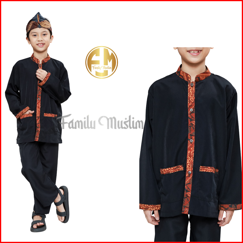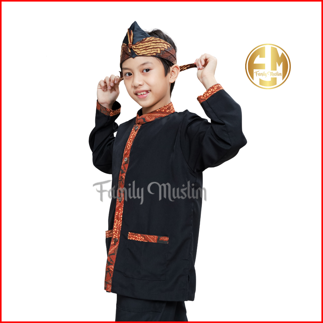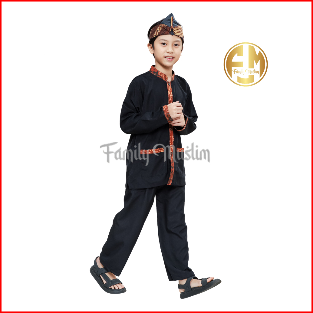 Family Muslim - Setelan Baju Pangsi Plus Iket Anak Umur 3-12 Lengan Panjang