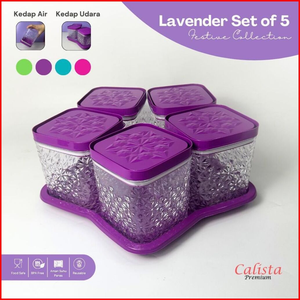 Toples Calista Lavender 6 Daun Satu Set Toples Kue Kering Lebaran Toples Plastik Tutup Bunga Elegan Set Toples Lebaran T