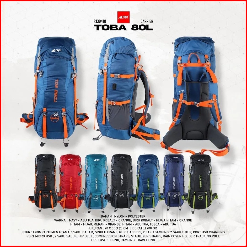 Tas Gunung Carrier Toba 80 L Arei Outdoorgear Keril Rei
