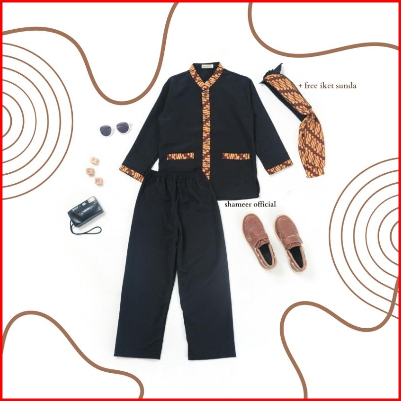 Setelan Baju Adat Pangsi Anak Free Iket Sunda Tradisional