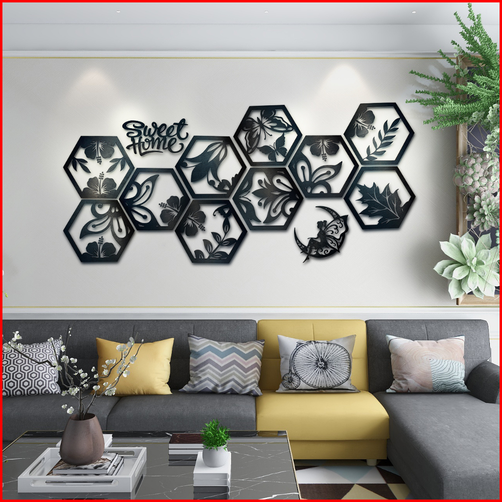 Hiasan Dinding Hexagonal Aesthetic Untuk Dekorasi Kamar Ruang Tamu Wall Decor Kayu Motif Bunga