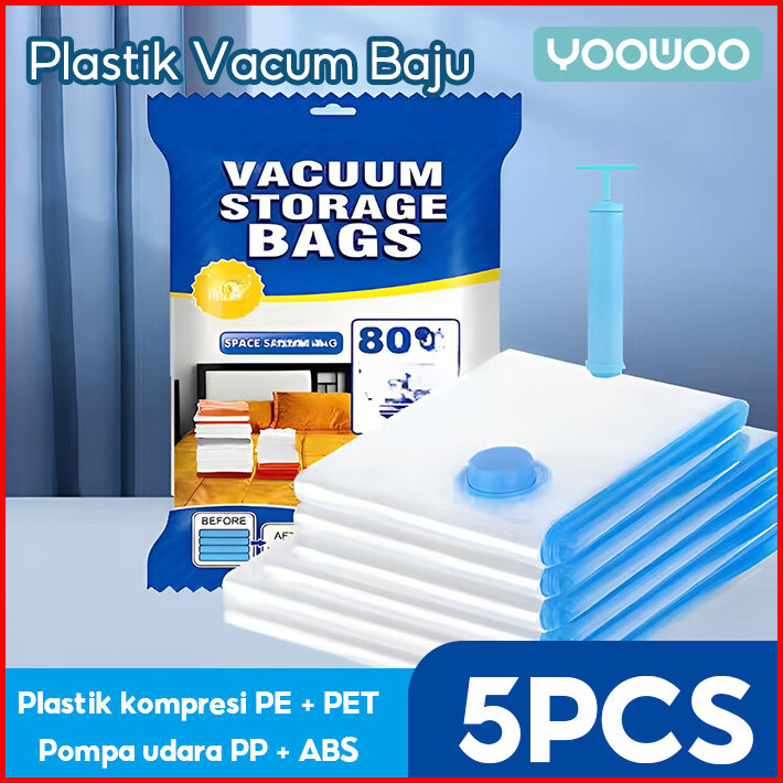 Yoowoo Plastik Vacuum Baju 3pcs Dan 5pcs Travel Packing Plastik Ziplock Vacuum Baju Traveling Plastik Packing Baju Dan P