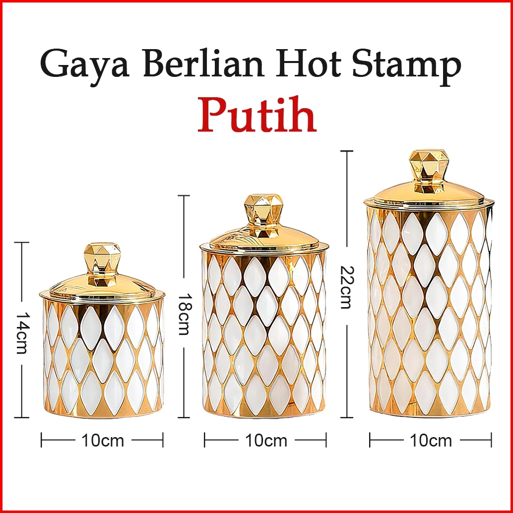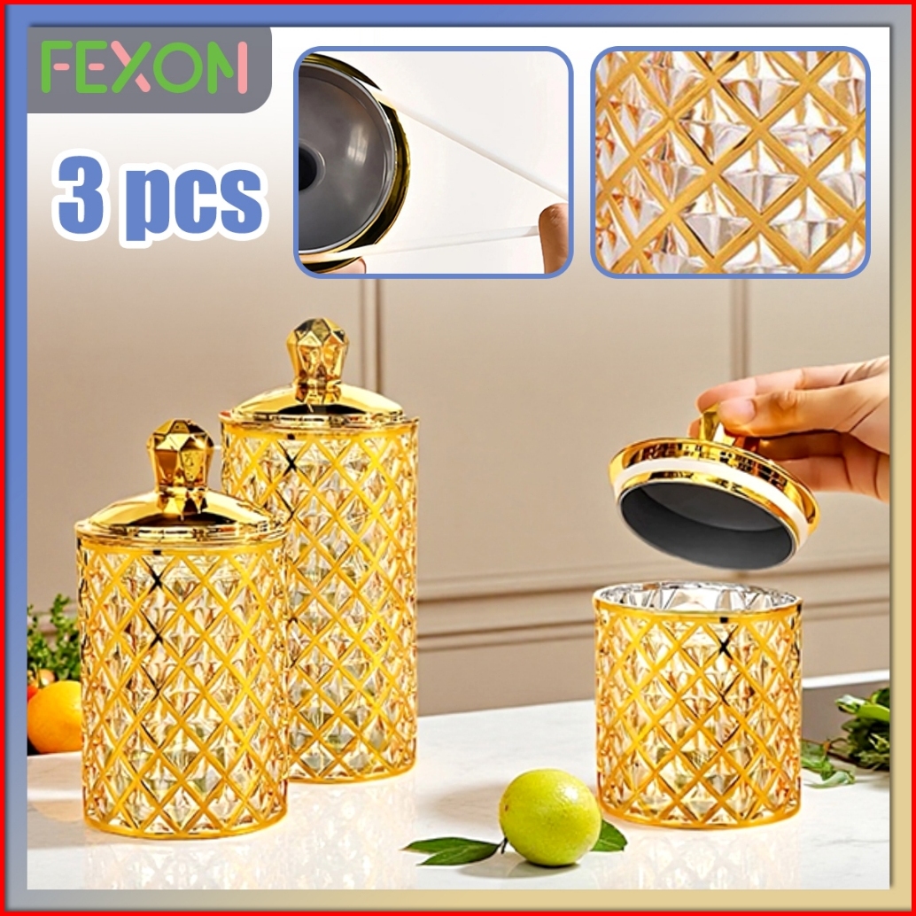 Fexon Set 3pcs Toples Kristal Mewah Wadah Penyimpanan Makanan Kedap Udara Toples Kue Kering Permen Hiasan Ruang Tamu