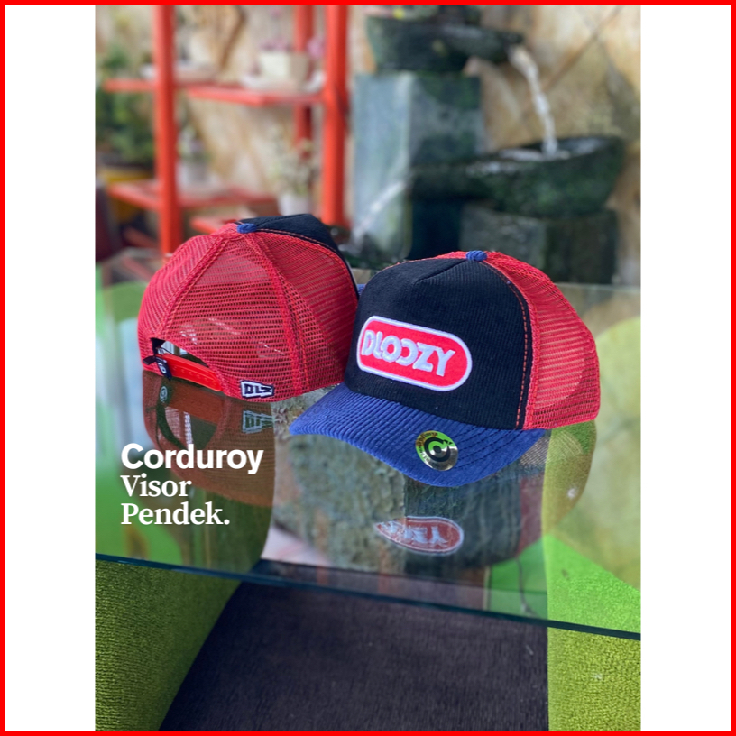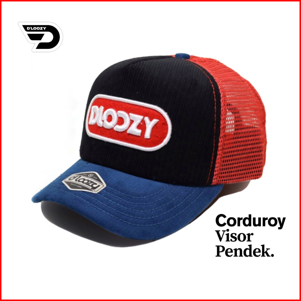 Dloozy Topi Trucker Jaring Corduroy Visor Pendek Pria Dewasa Original Tosca Hitam Merah Dlztc-thm