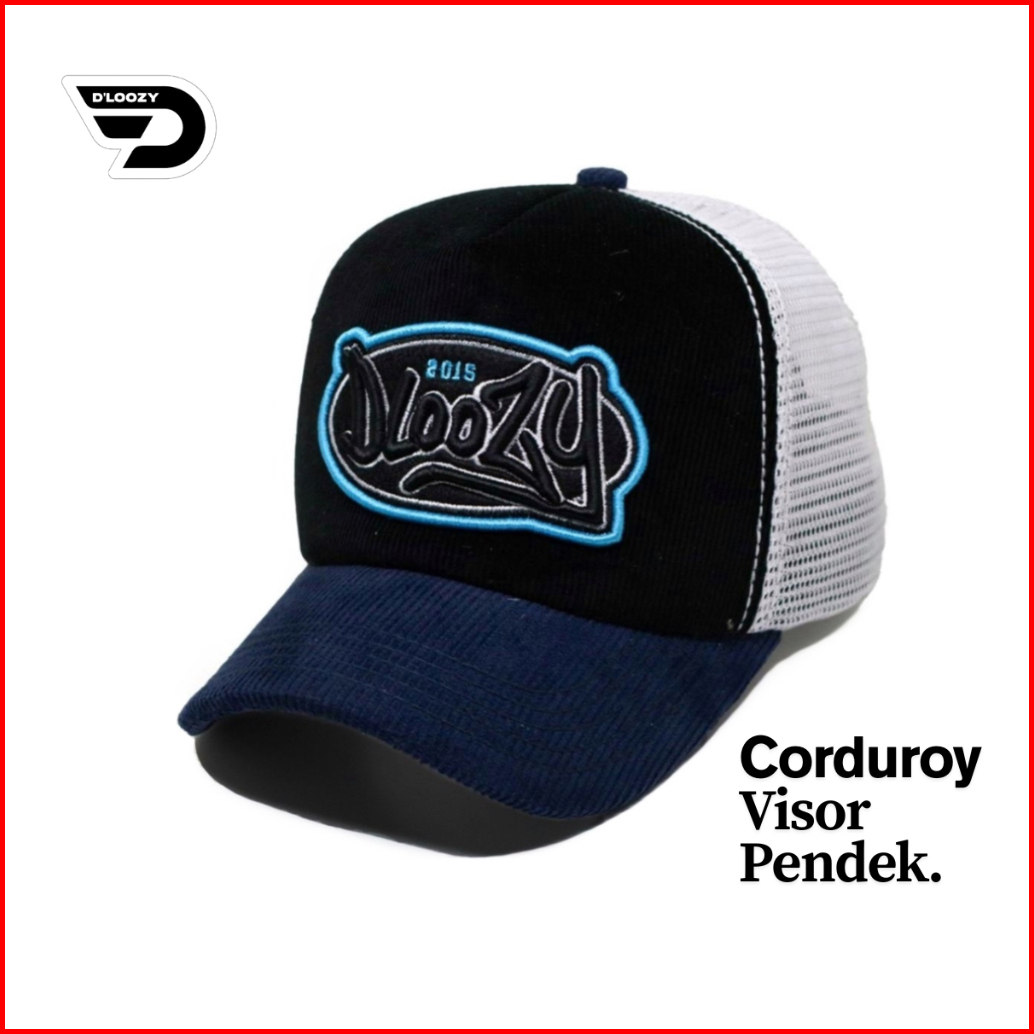 Dloozy Topi Jaring Pria Dewasa Corduroy Visor Pendek Navy Hitam Putih Dlztc-nhp