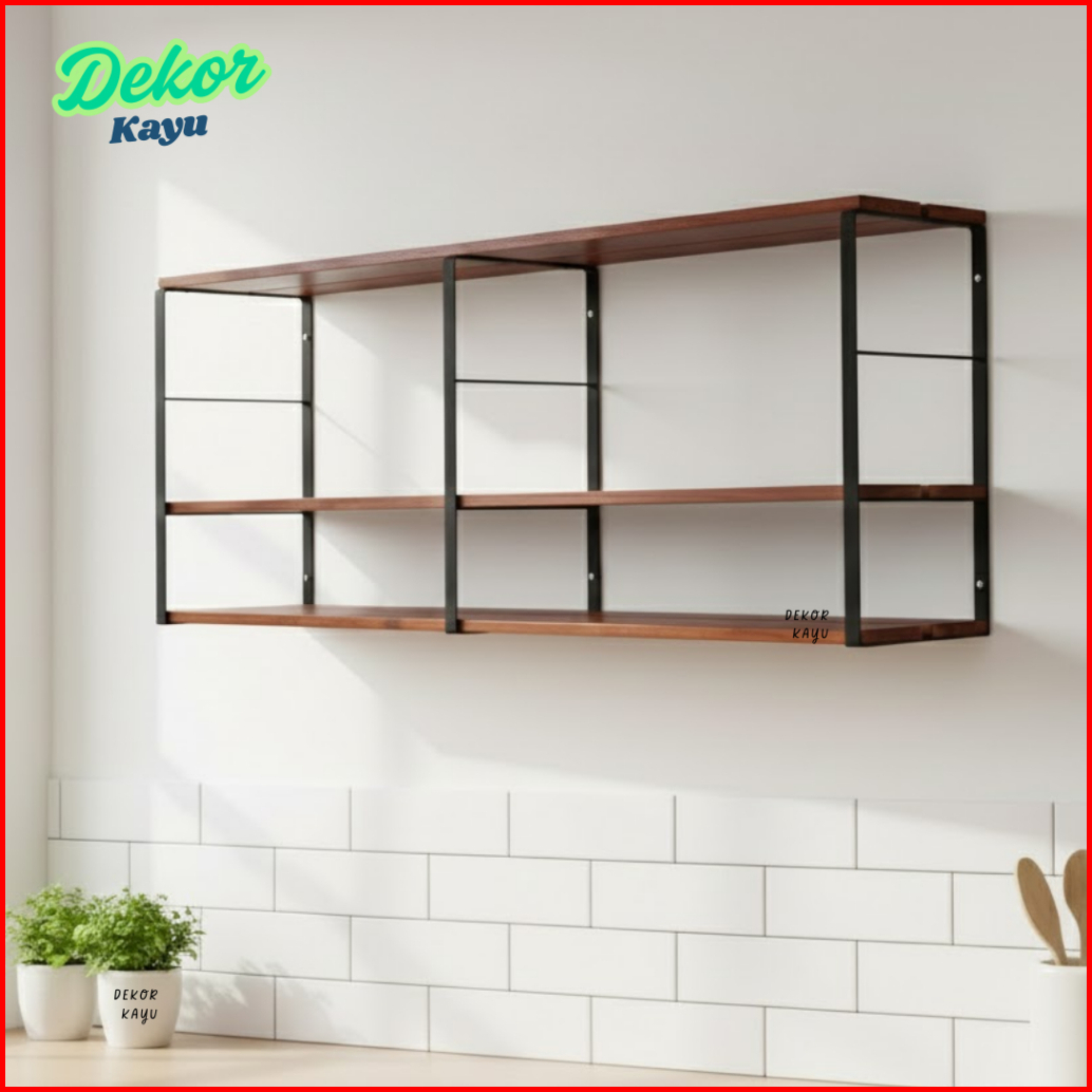 Tig Rak Susun Buku Sepatu Dinding Besi Dan Ambalan Kayu Tig Rak Susun