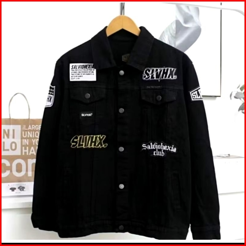 Jaket Jeans Pria Bordir Salviohexia Jaket Denim Cowok Emblem M-xxxl Oversize Terbaru Distro