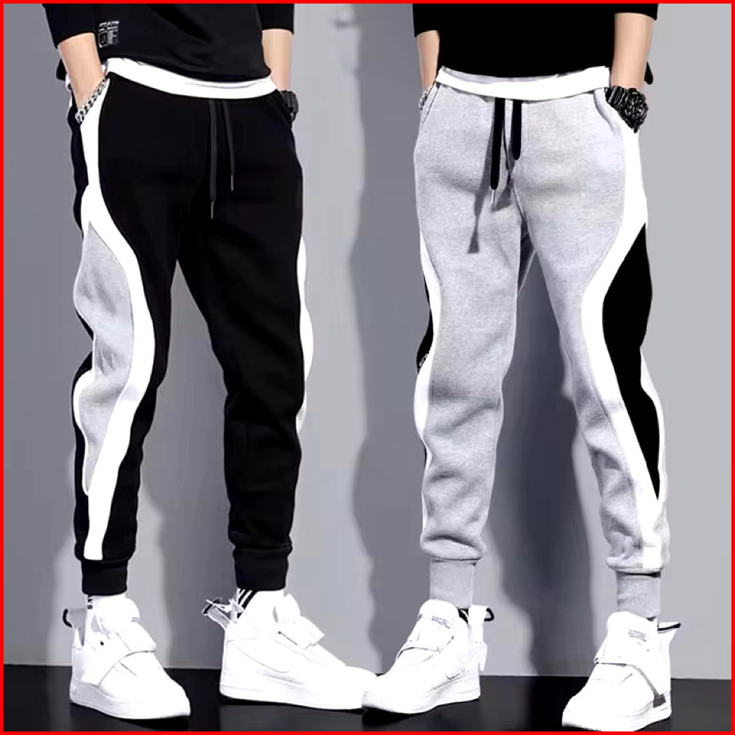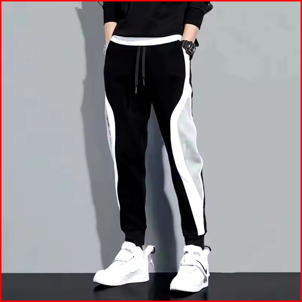 Men S Wide Loose Casual Pants Mens Patchwork Nine-point Sports Elastic Rope Breathable Tie-foot Trousers