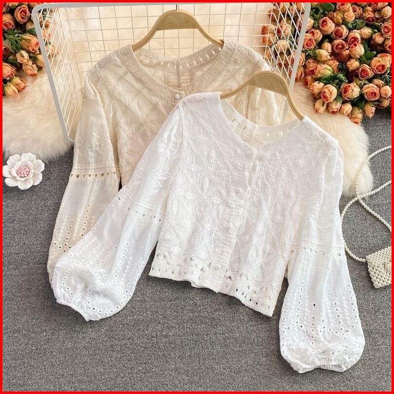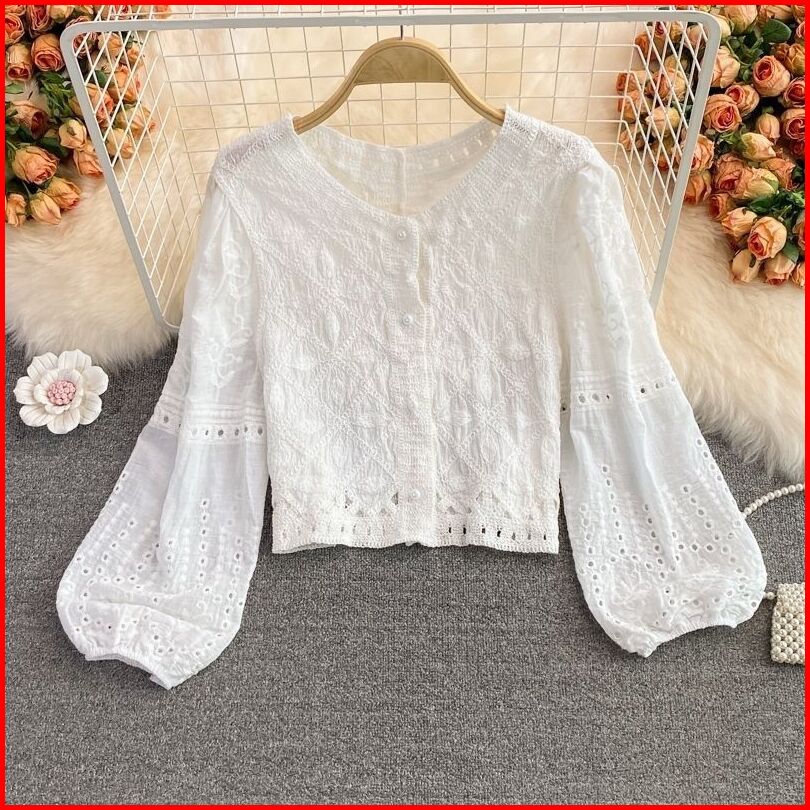 Atasan Katun Bordir Blouse Wanita Retro Vintage Premium