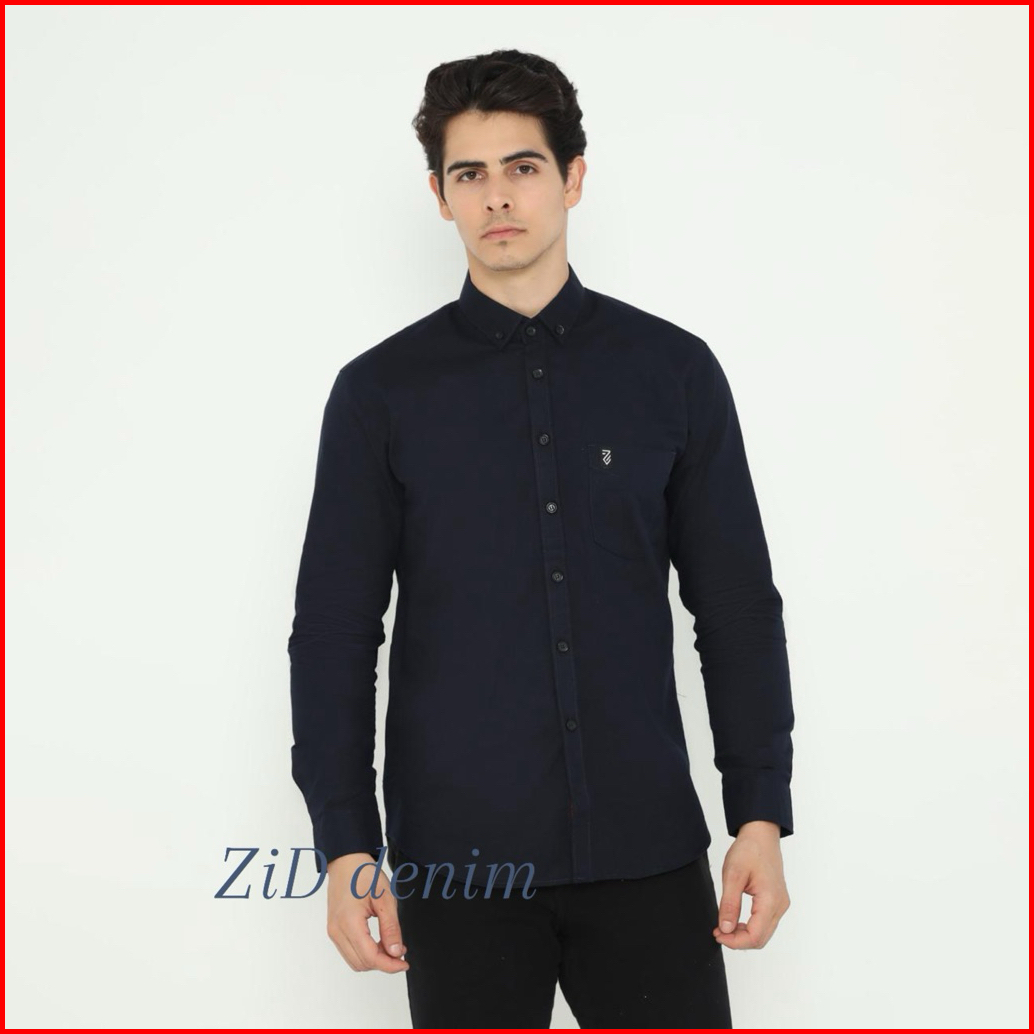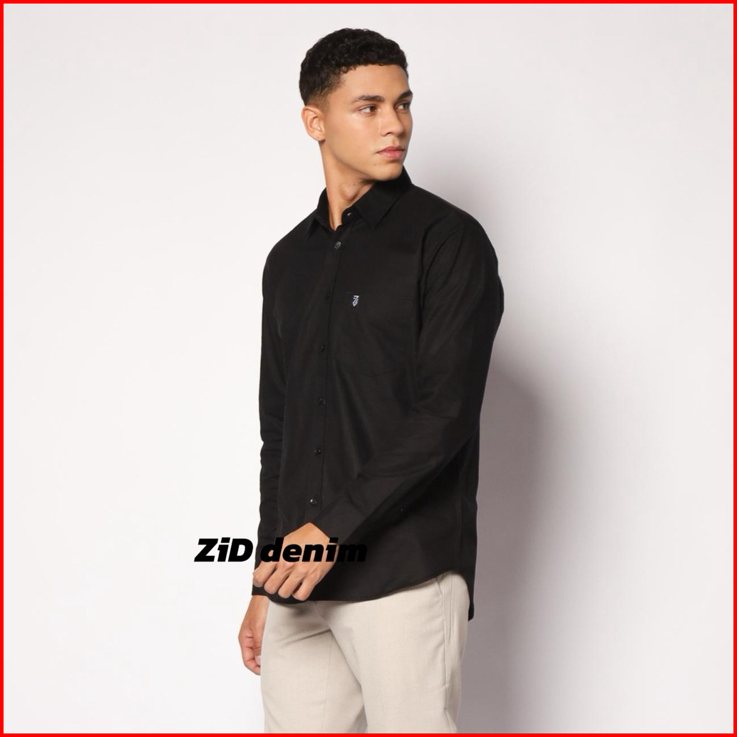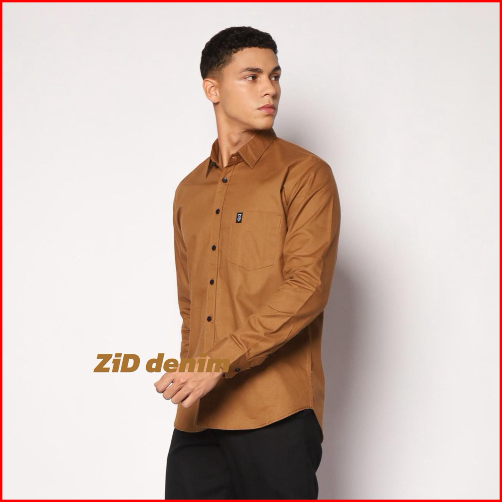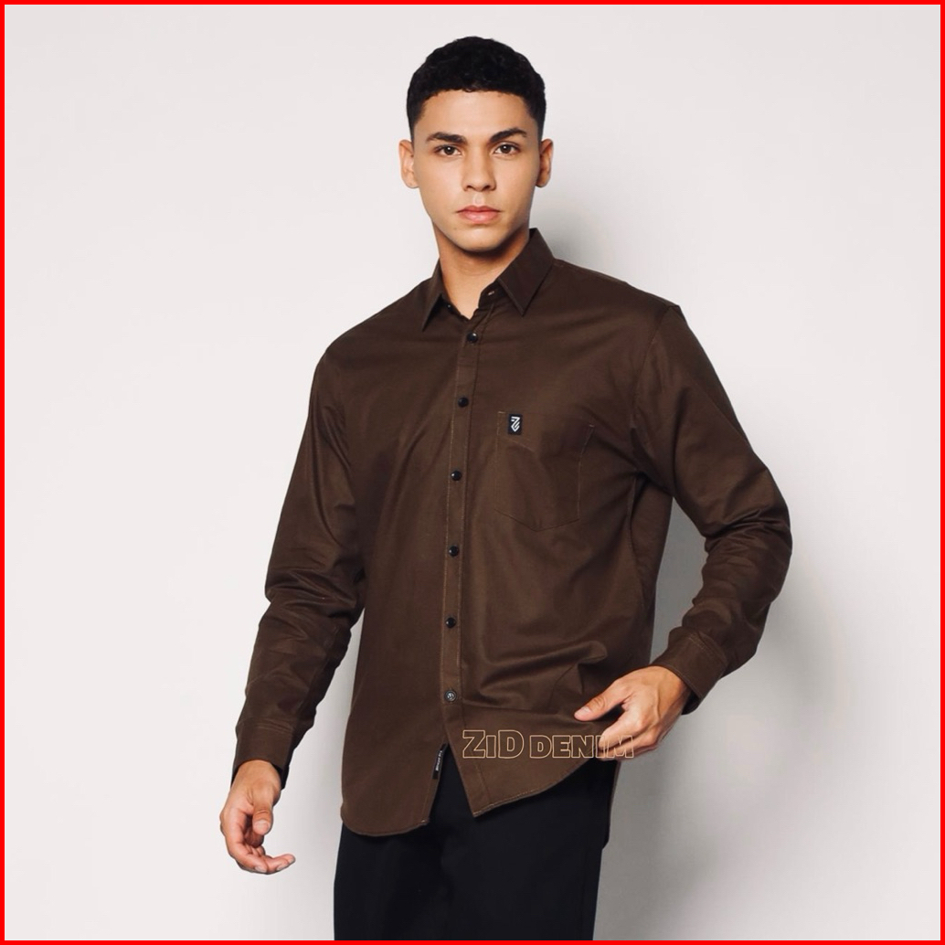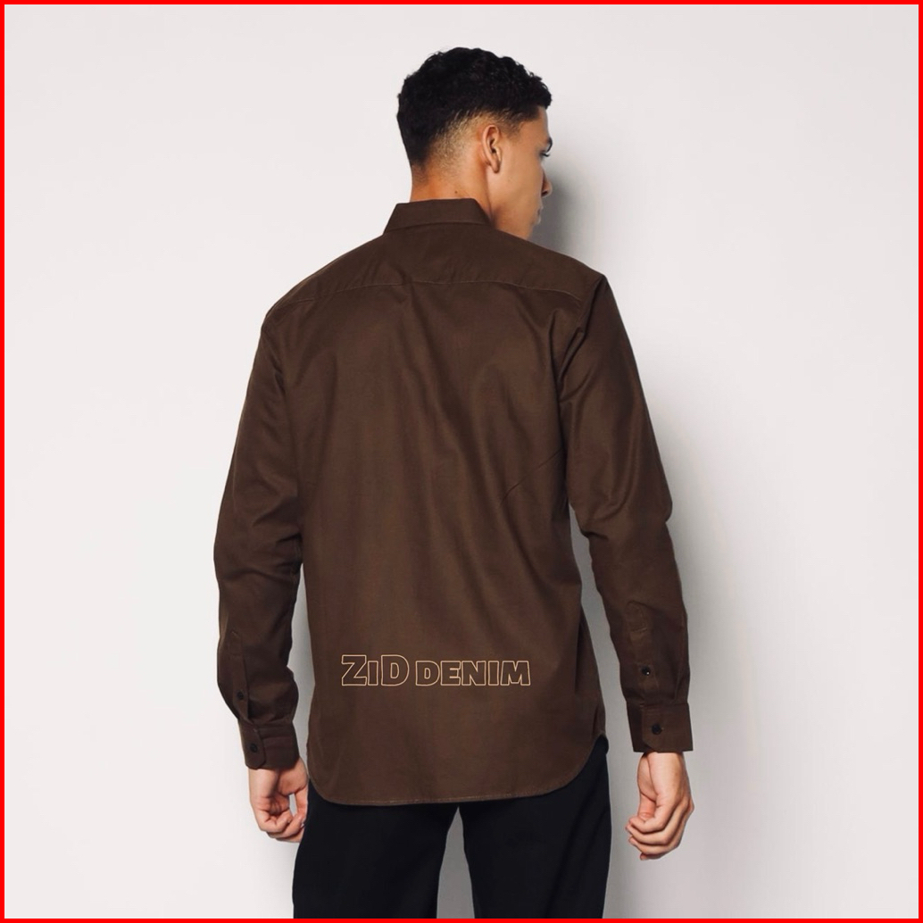 Kemeja Pria Mahogany Lengan Panjang Katun Cigaret Slim-fit