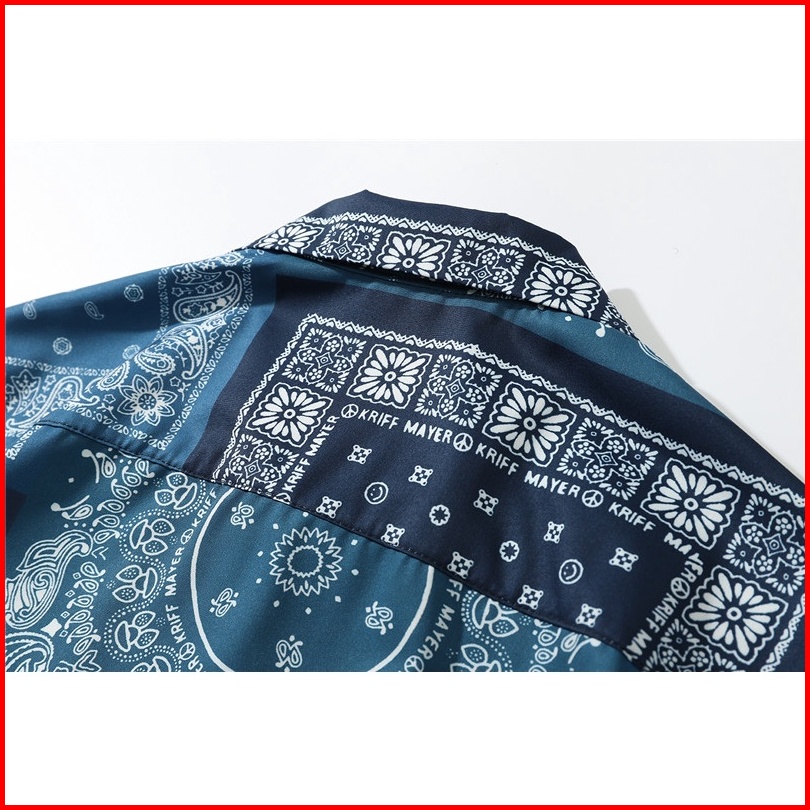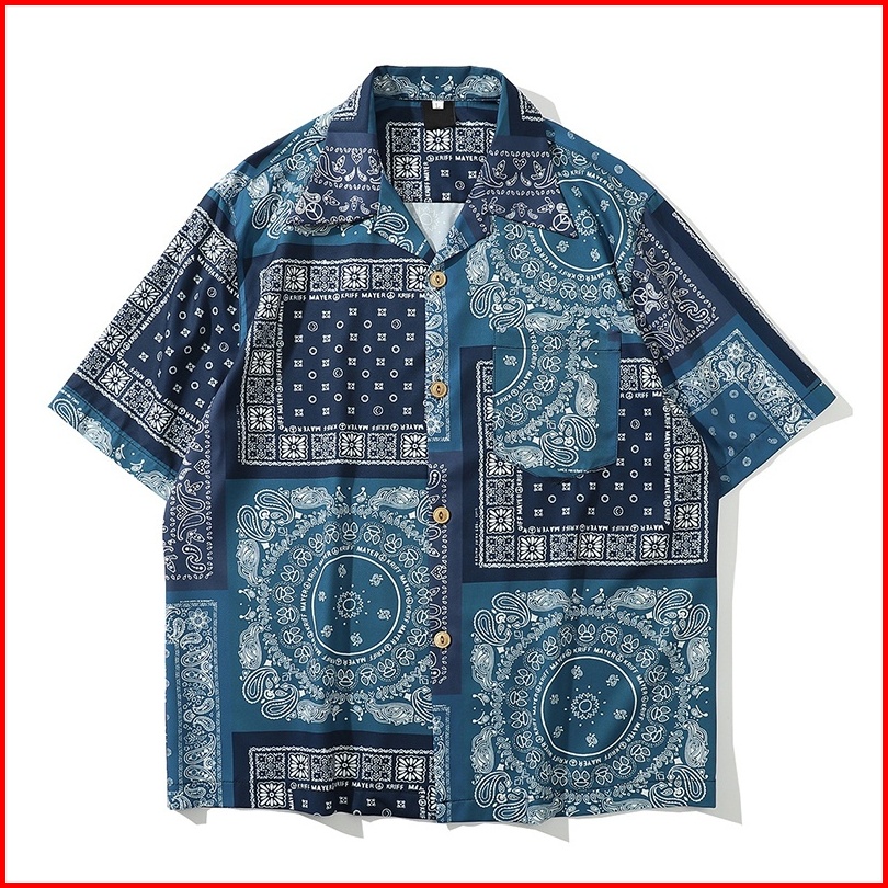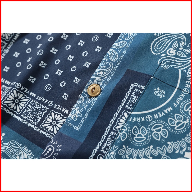 Dark Icon Blue Bandana Shirt Men Vintage Paisley Polo Shirts Male Top