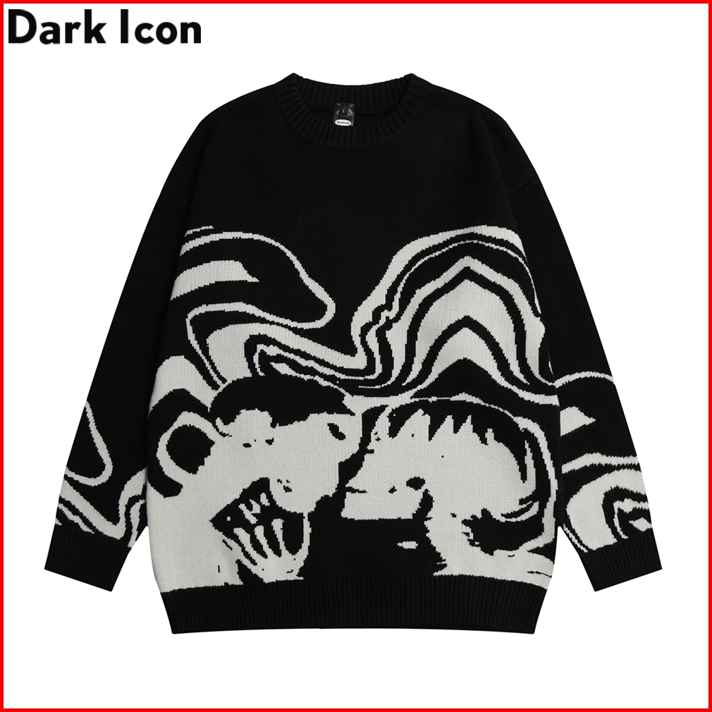Dark Icon Pullover Men S Sweater Round Neck Loose Sweaters For Men Women Knitwear Black Beige