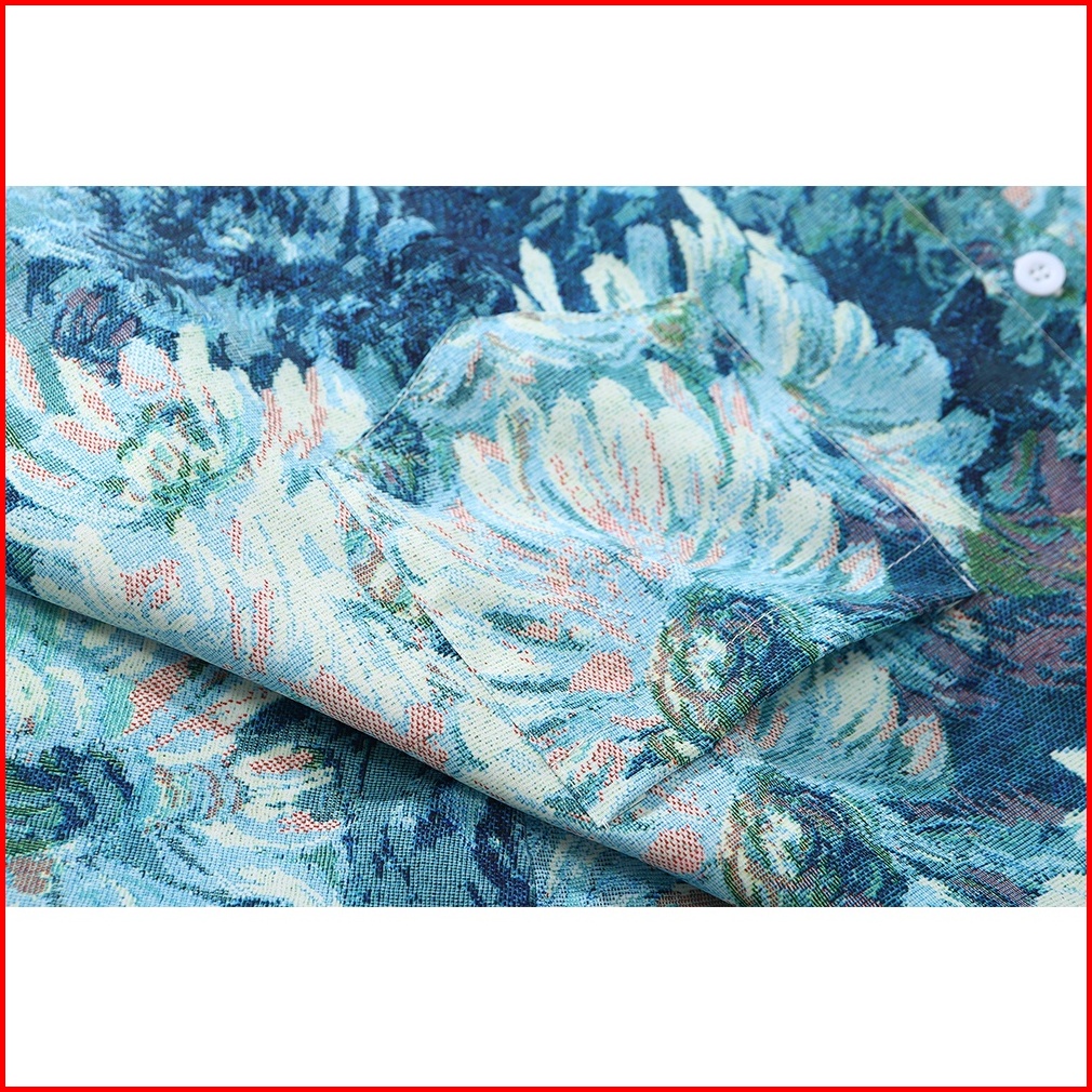 Dark Icon Kemeja Hawaiian Pria Lengan Panjang Motif Hawai Casual Shirt Wanita Biru Khaki