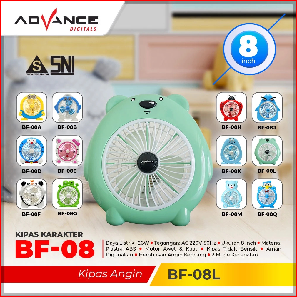 Kipas Angin Karakter Advance 8 Inch Bf-08 Kipas Karakter Bf08 8inch Kipas Duduk Lucu Desktop Fan