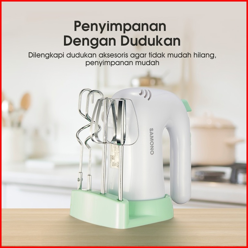 Samono Hand Mixer Hemat Daya 200 Watt Dengan Dudukan Penyimpanan 5 Level Kecepatan Sw-thmb200