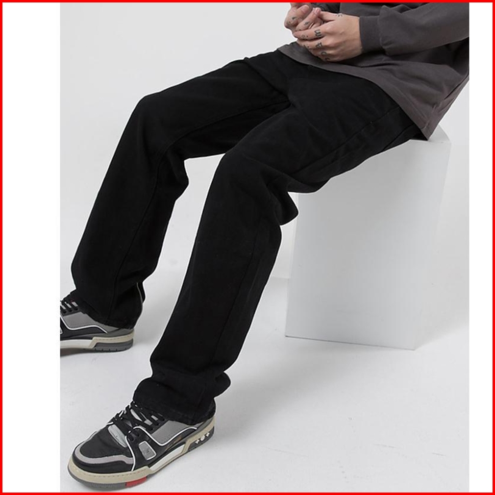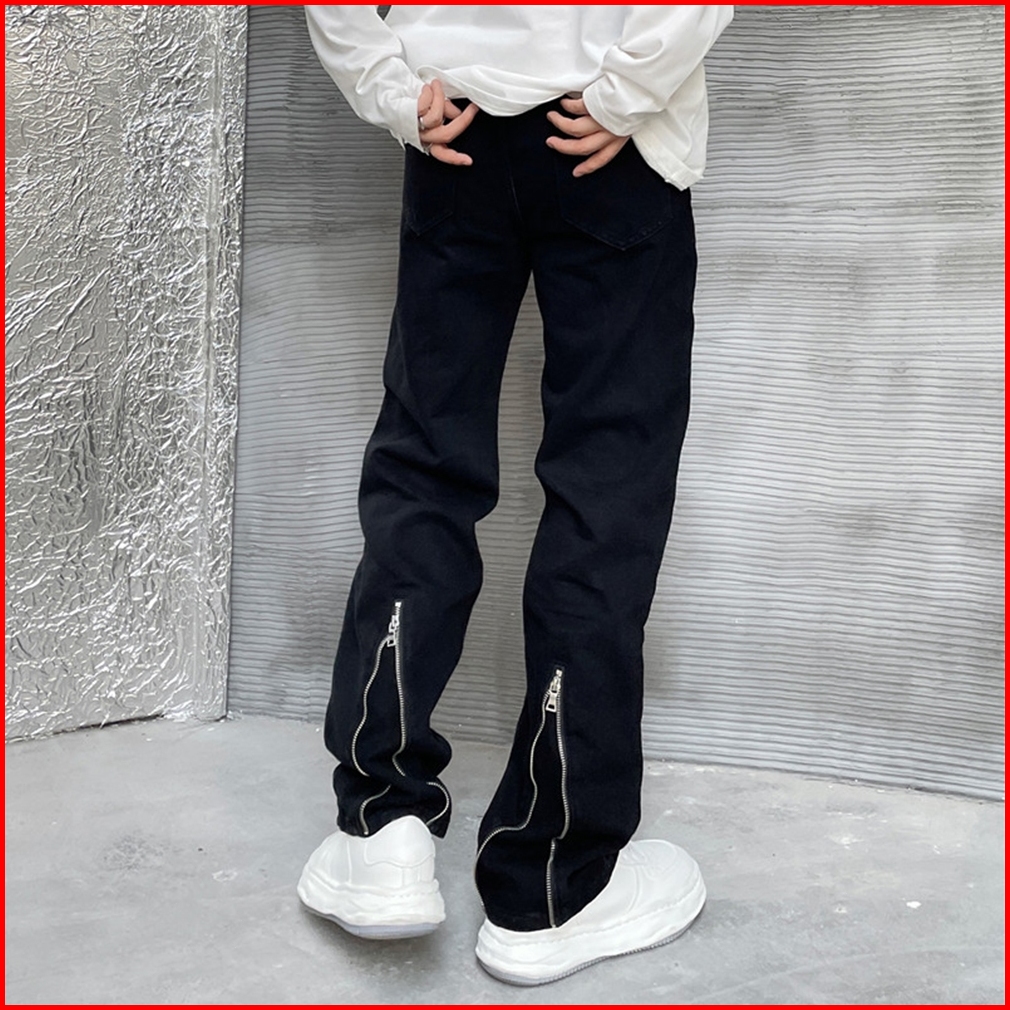 Dark Icon Back Ankle Zipper Black Jeans Men Straight Style