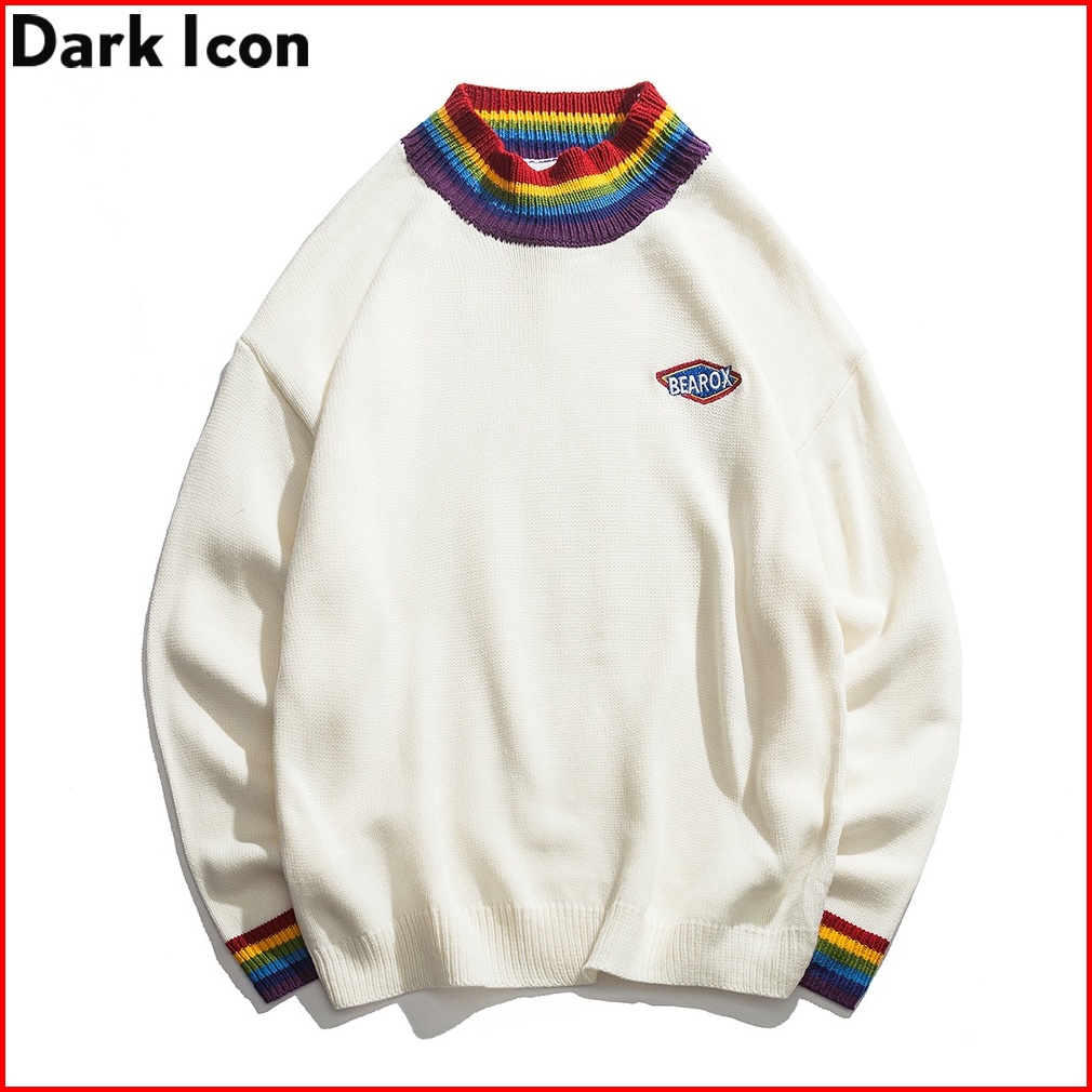 Dark Icon Rainbow Collar Pullover Men S Sweater 2021 Winter Loose Style Sweater For Men High Street