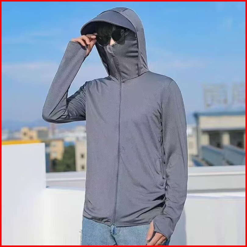 Men S Ice Silk Sunprooof Jacket Summer New Ultrathin Breathable Anti-uv Outdoor Fishing Jacket Loose Type Thin