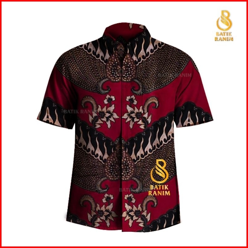 Batik Pria Lengan Pendek Slim Fit Hem Premium Baju Modern M L Xl Xxl