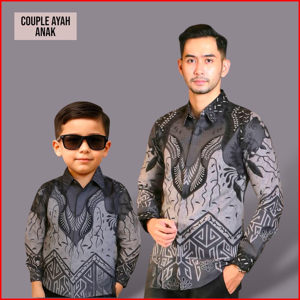 Couple Kemeja Batik Ayah Dan Anak Lengan Panjang Pendek Bahan Katun Polymicro Adem Nyaman