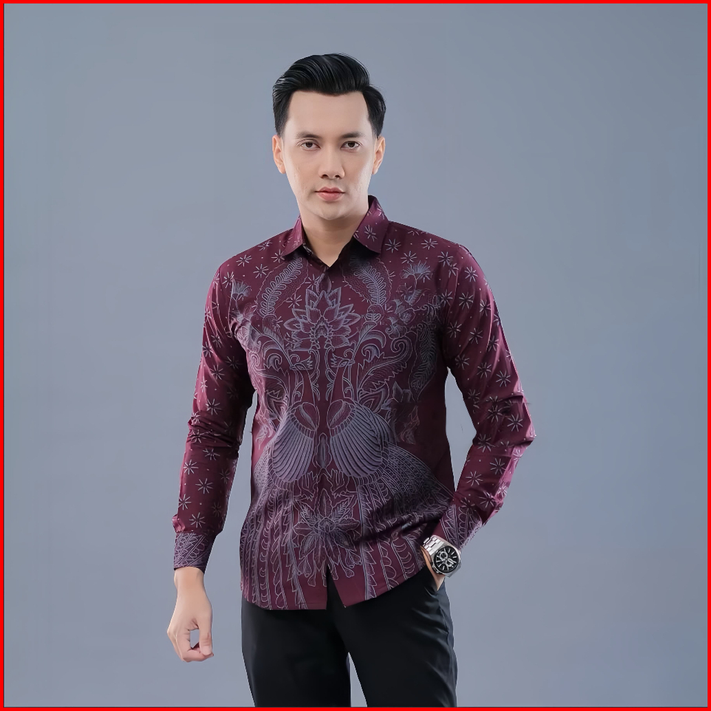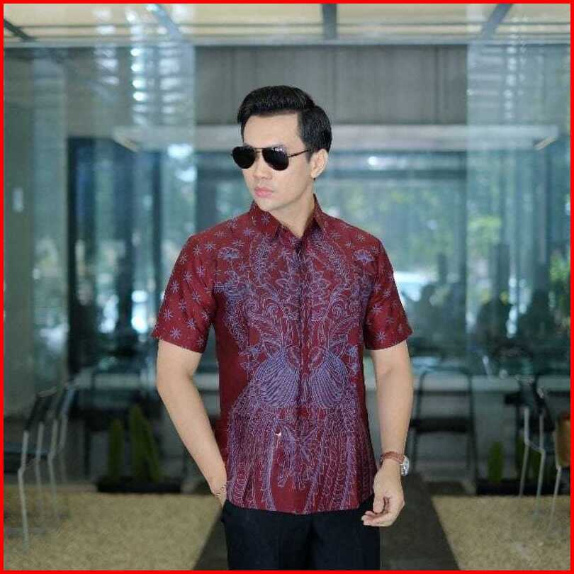 Baju Batik Couple Anak Bapak Terbaru Burgundy Bahan Katun Adem Nyaman