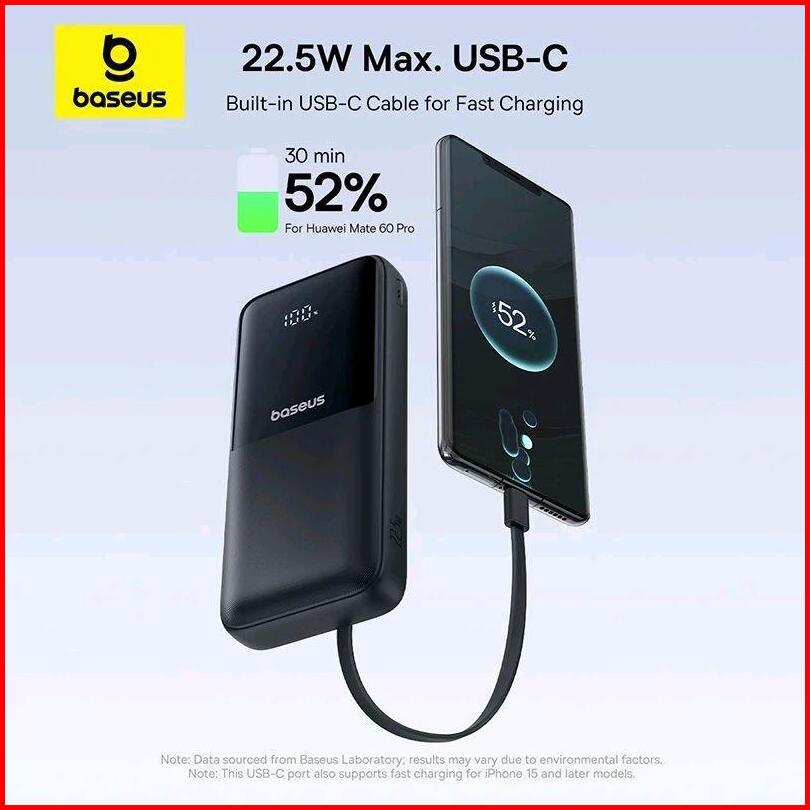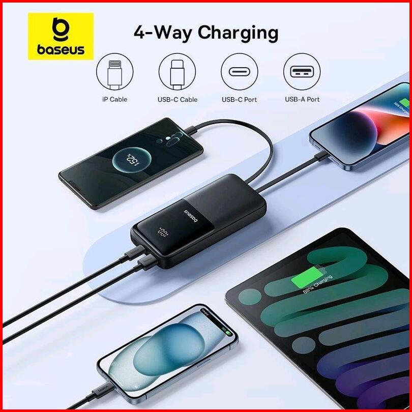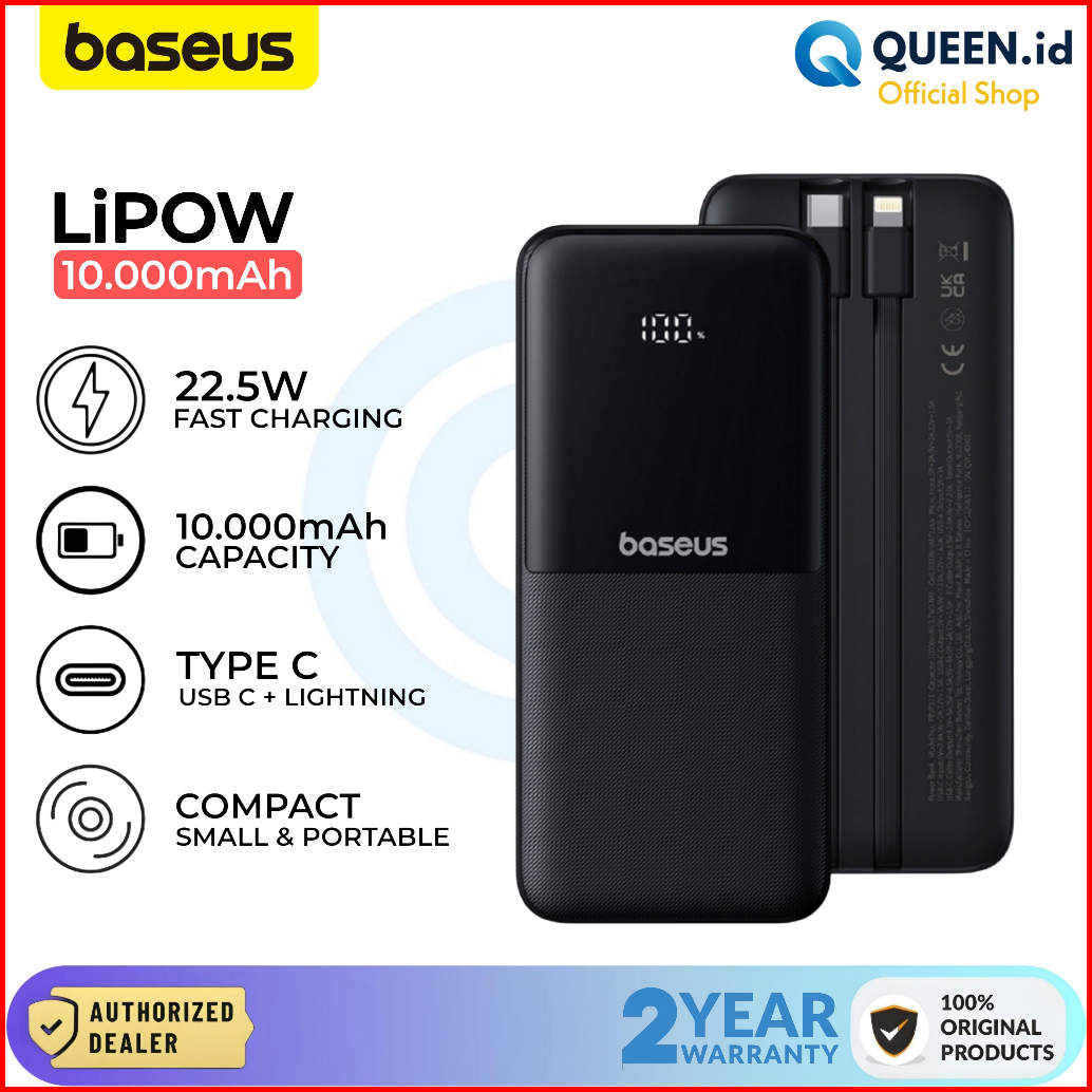 Baseus Lipow Powerbank 10.000mah 22.5w Fast Charging Pd Display Power Built-in Kabel Usb C Lightning