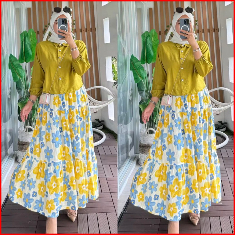 Angelina Set Rok Salur Crinkle Airflow Ld 110-115 Set Rok Angelina Angelina Setelan Rok Set Rok Lovina Set Salur One Set