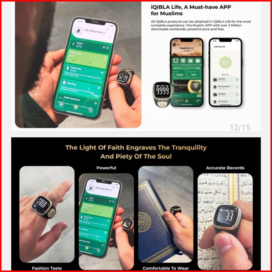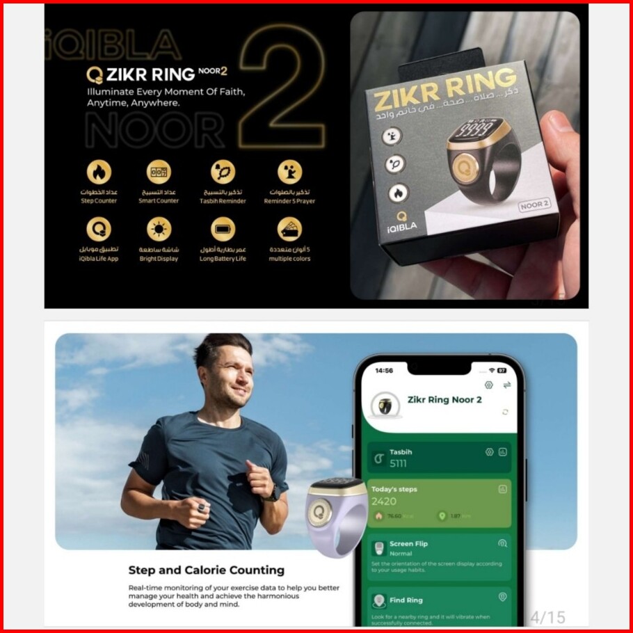 Iqibla N02 Noor 2 Zikr Smart Ring Cincin Tasbih Digital 0.6 Display Tasbih Counter Penghitung