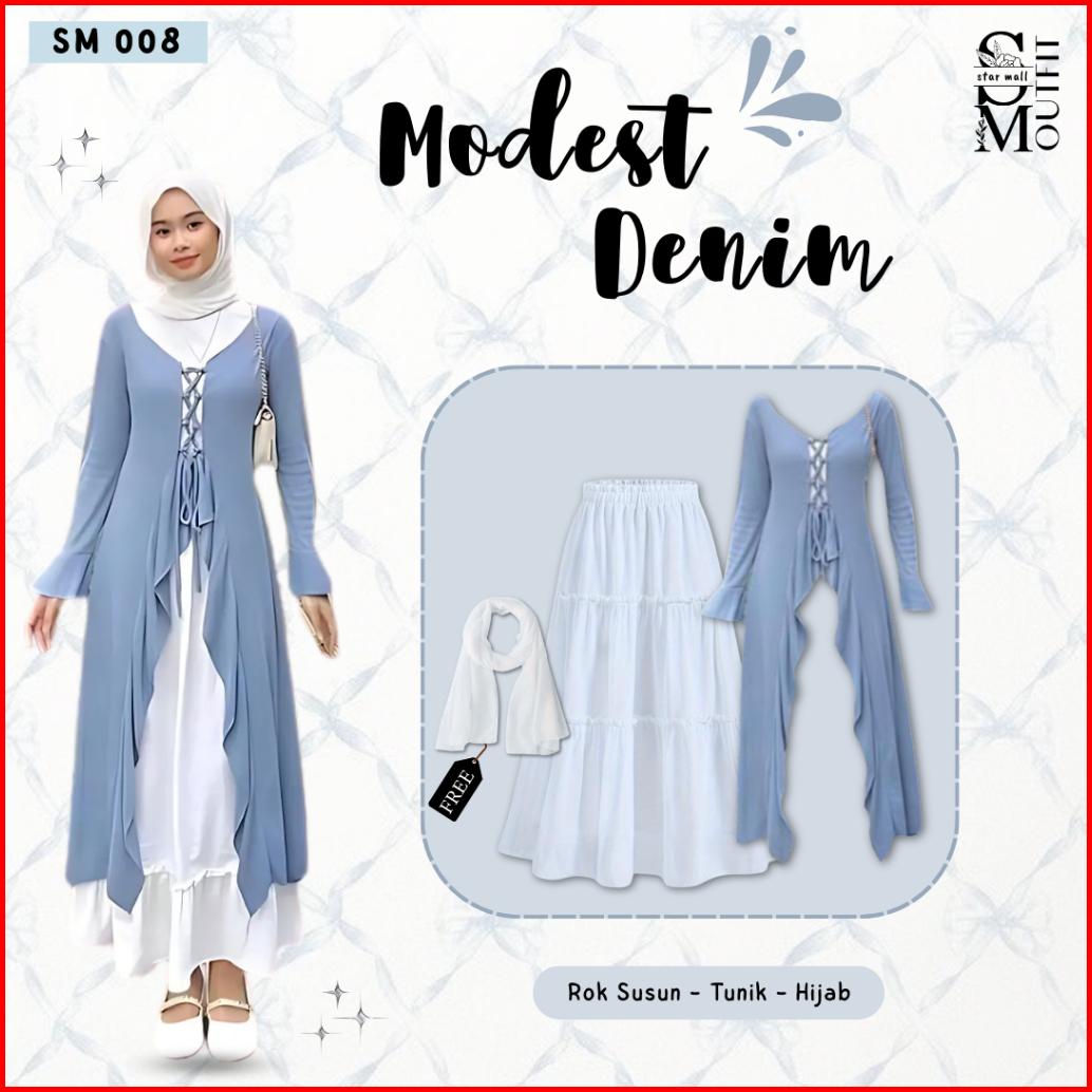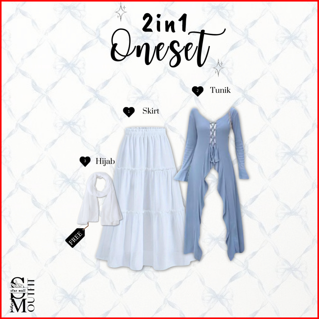 2in1 Oneset Wanita Kekinian Tunik Rok Susun Free Hijab One Set Hijab Style Cantik Sm008