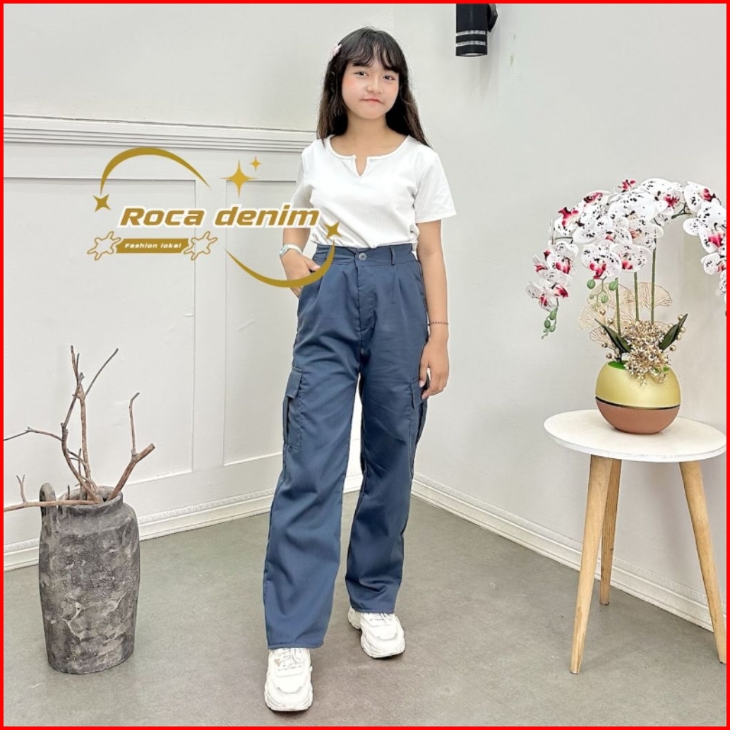 Celana Cargo Anak Perempuan 816 Tahun Katun Drill Tebal Korean Style Ada Saku