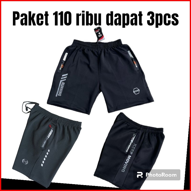 Paket 110rb Dapat 3pcs Celana Running Pria Gym Volly Pendek Misty Tebal