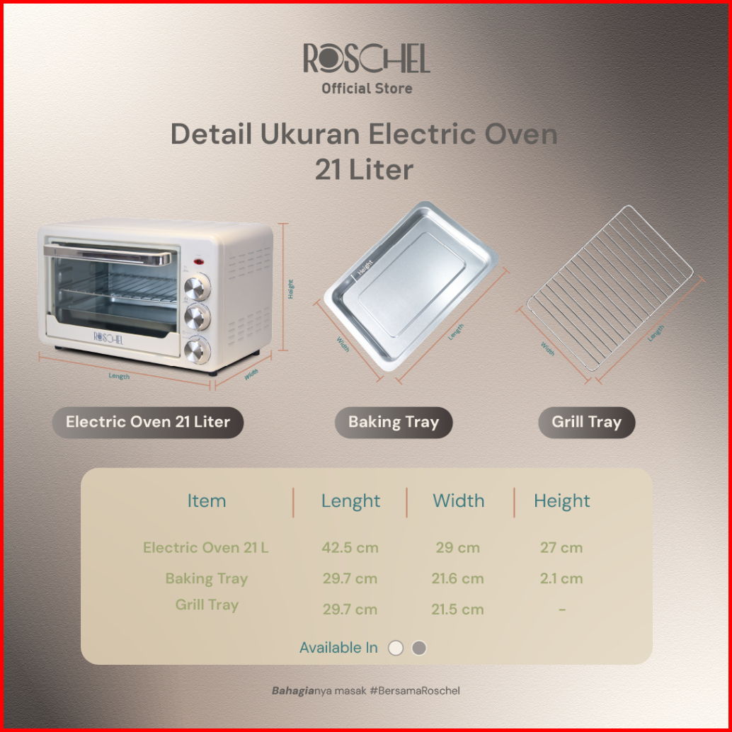 Special Lila.azmina Roschel Electric Oven Low Watt 2x300 W Atas Bawah Kapasitas 21l Stay Warm Function Menghangatkan Wit