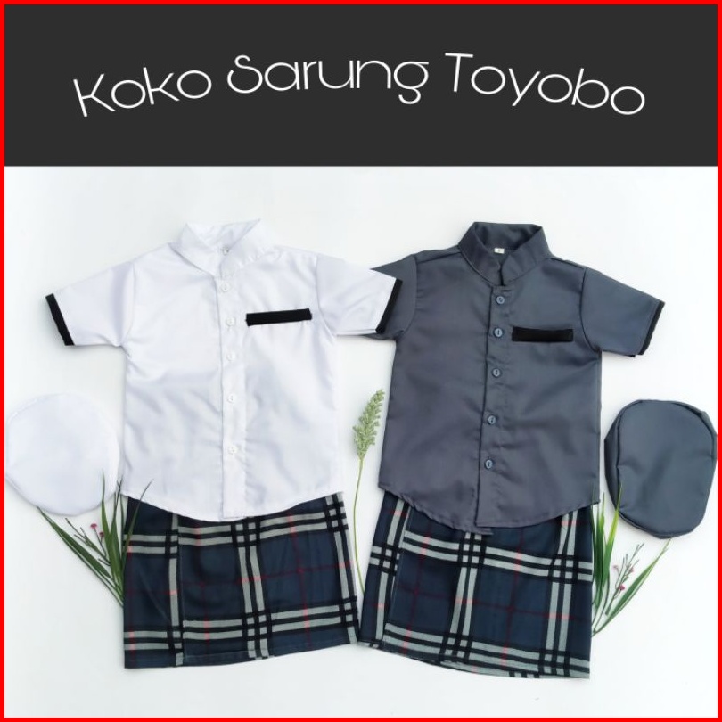 Si Pesek Baju Koko Sarung Muslim Bayi Laki-laki Cowok Topi Toyobo 6 - 24 Bln