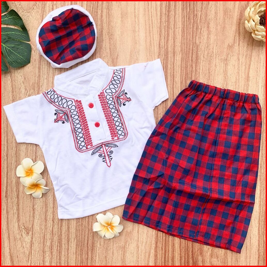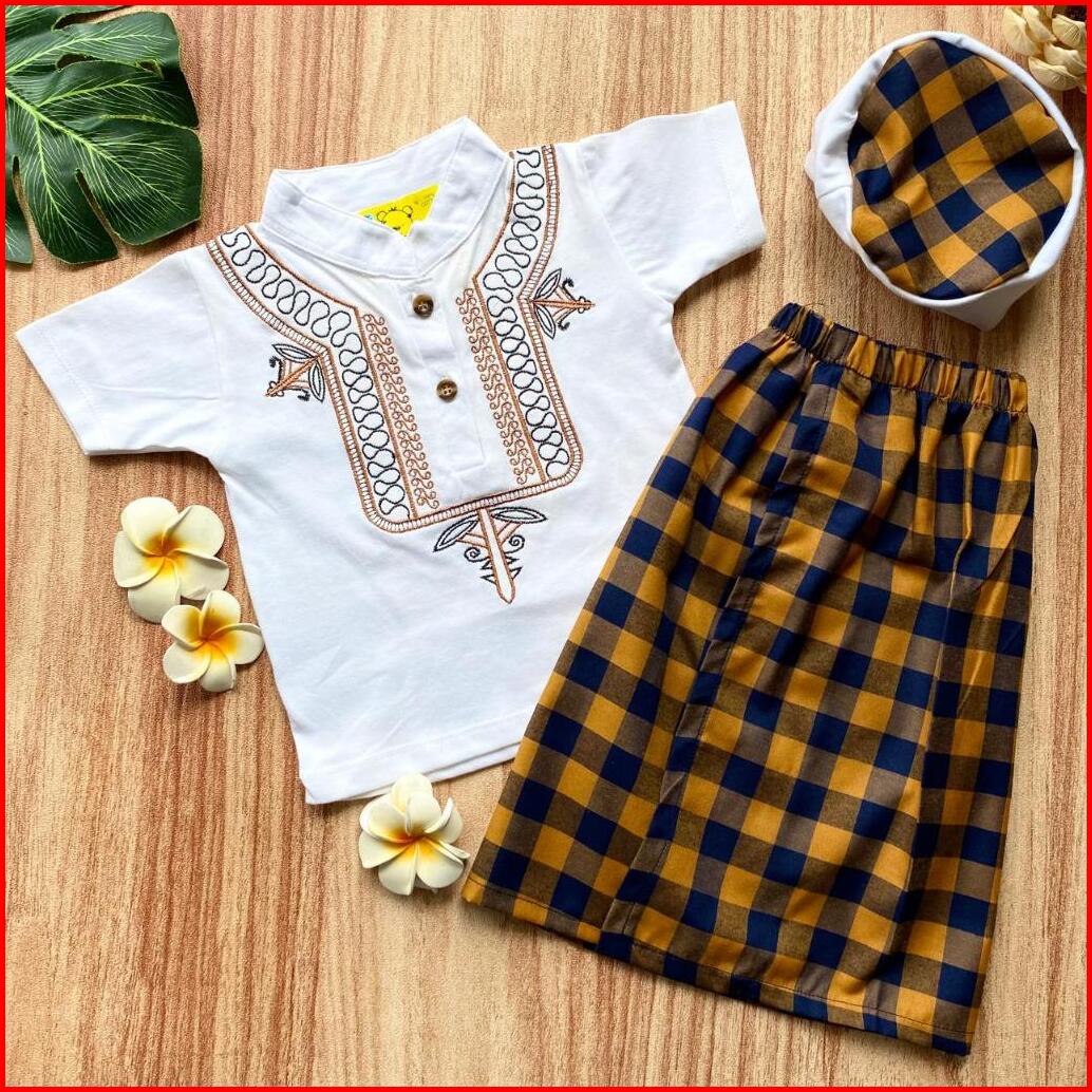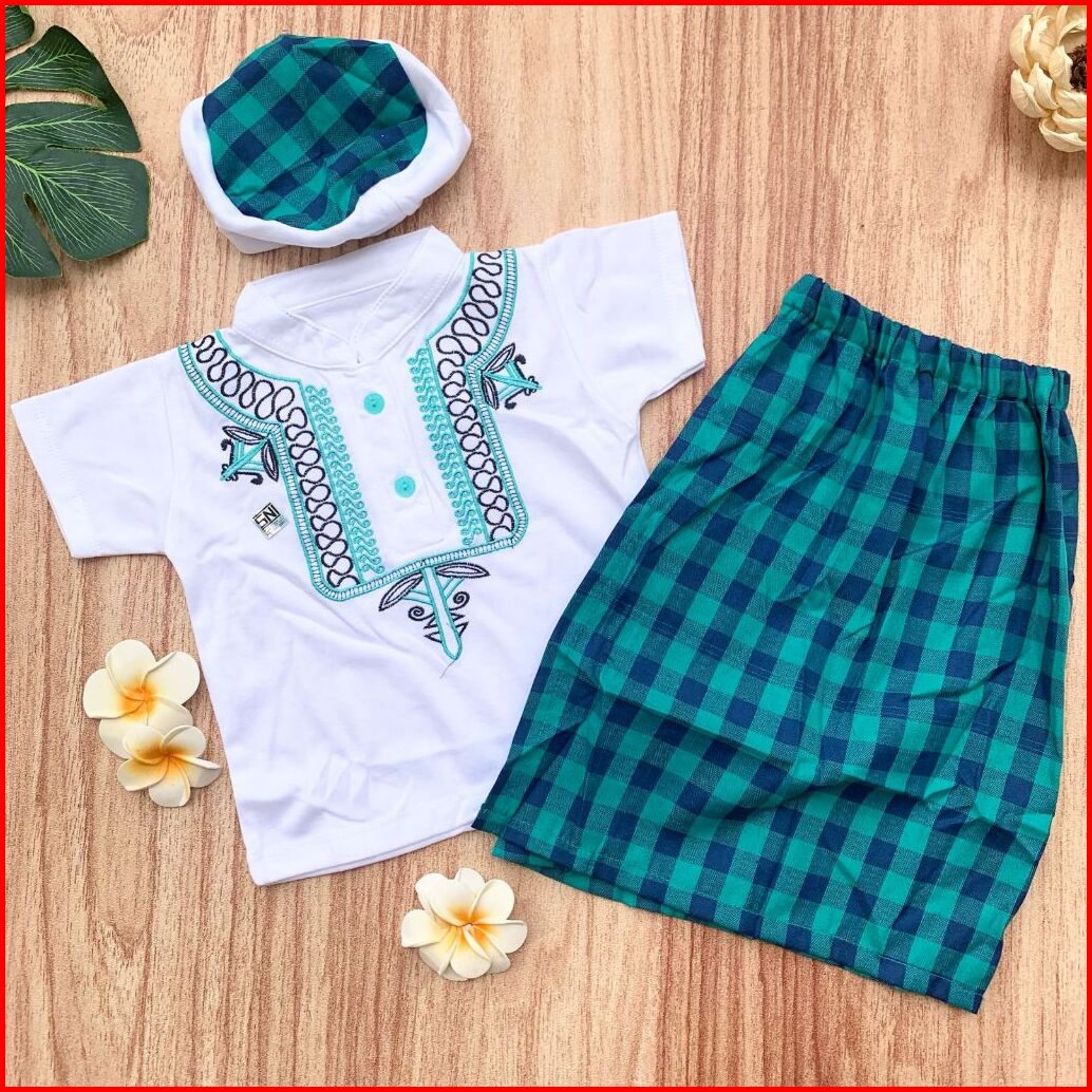 Theobaby Setelan Koko Lengan Pendek Sarung Bayi Laki-laki 6-12 Bulan Bayi Cowok Muslim -kok