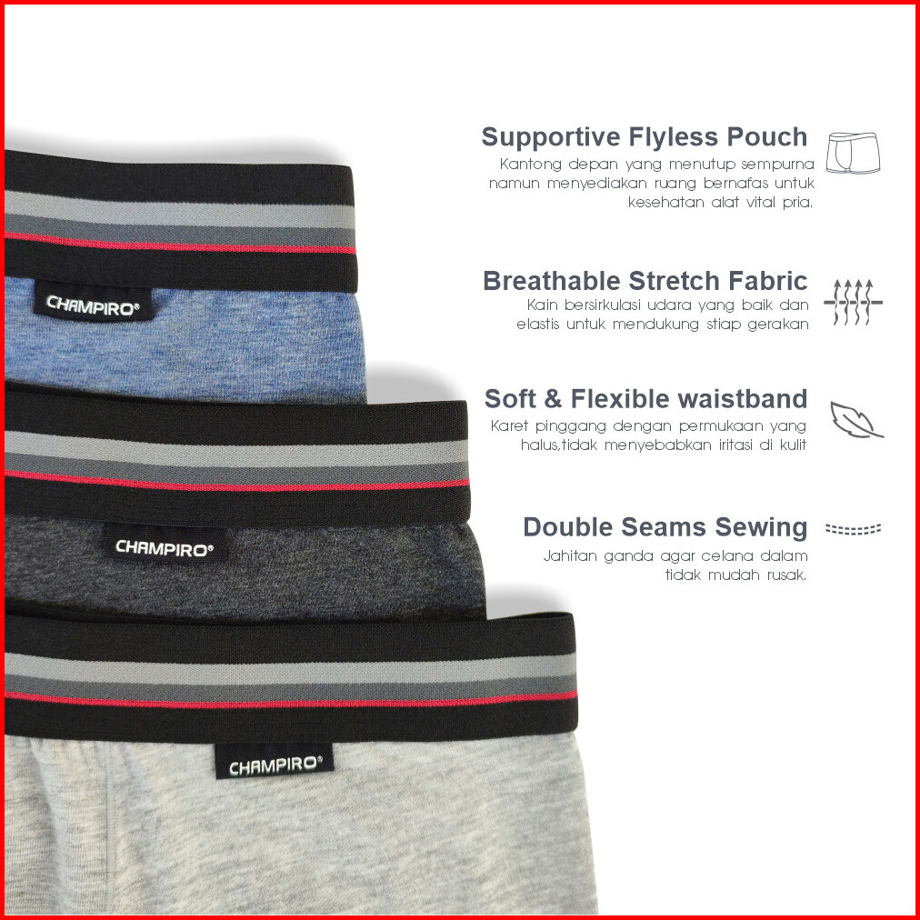 Champiro Celana Dalam Pria Underwear 3 Pcs Boxer Pria C0312bx