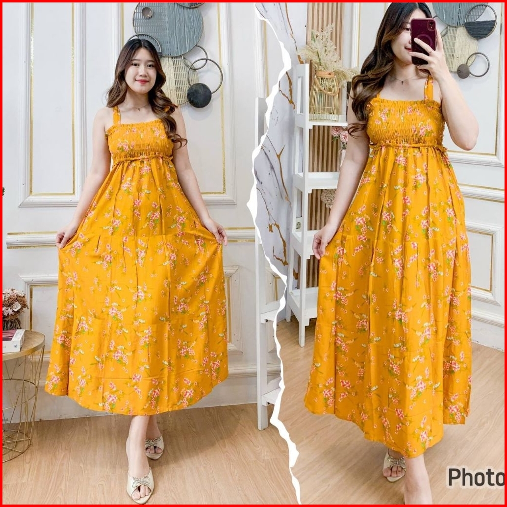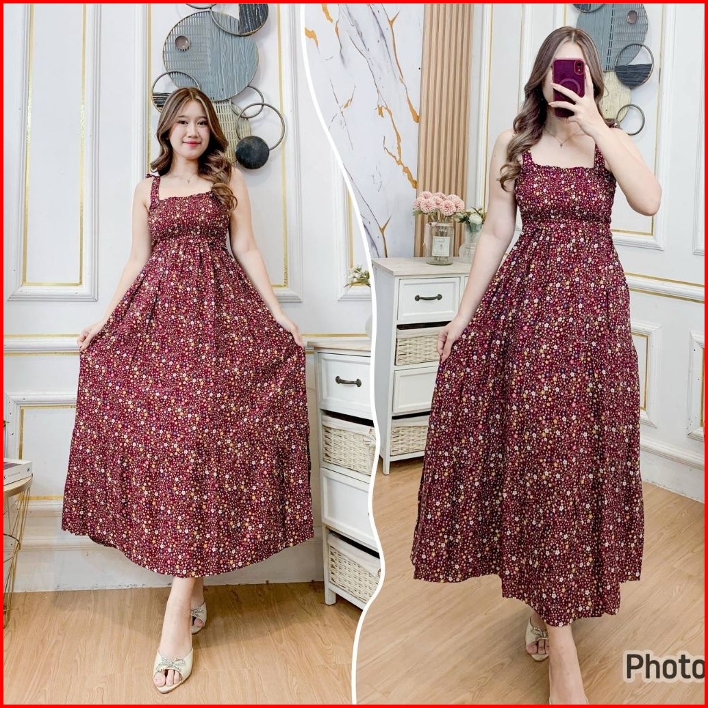 Daster Bali Panjang Kerut Tali Pundak Isabel