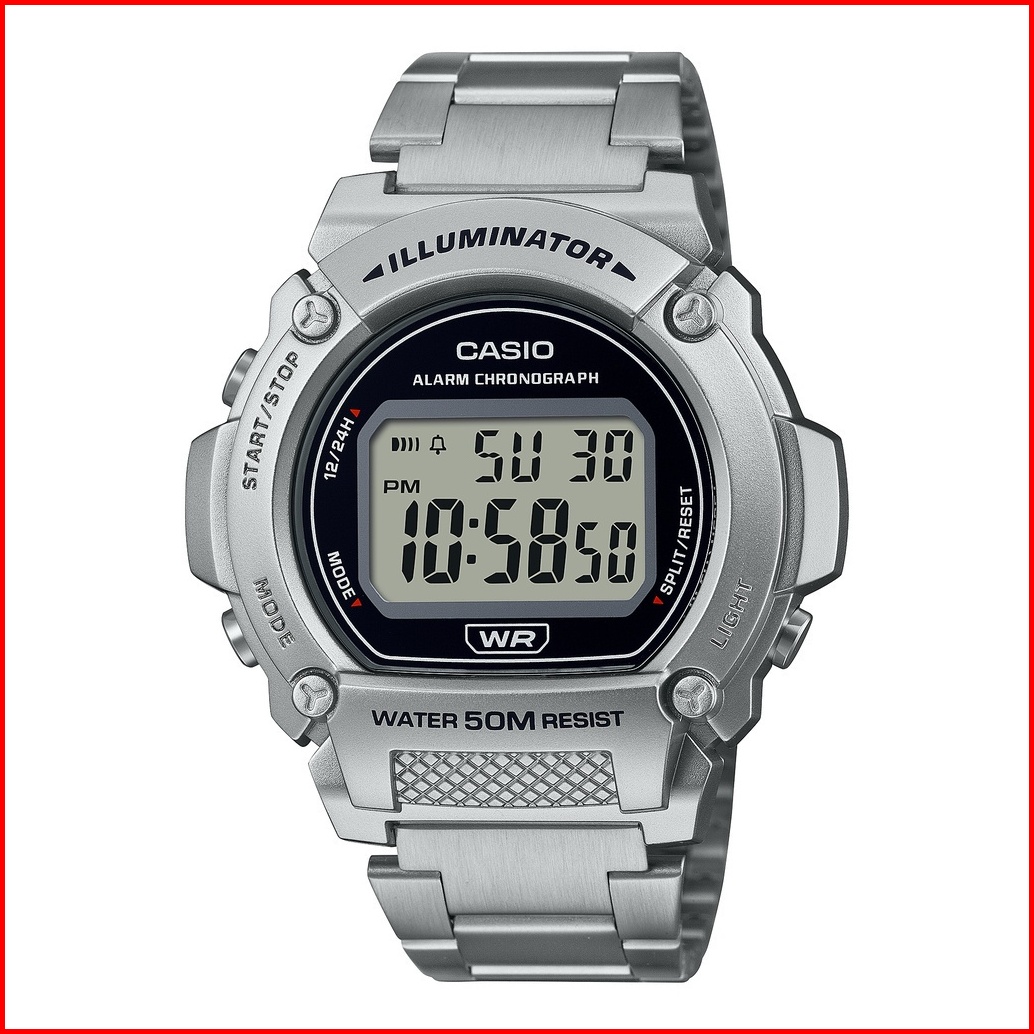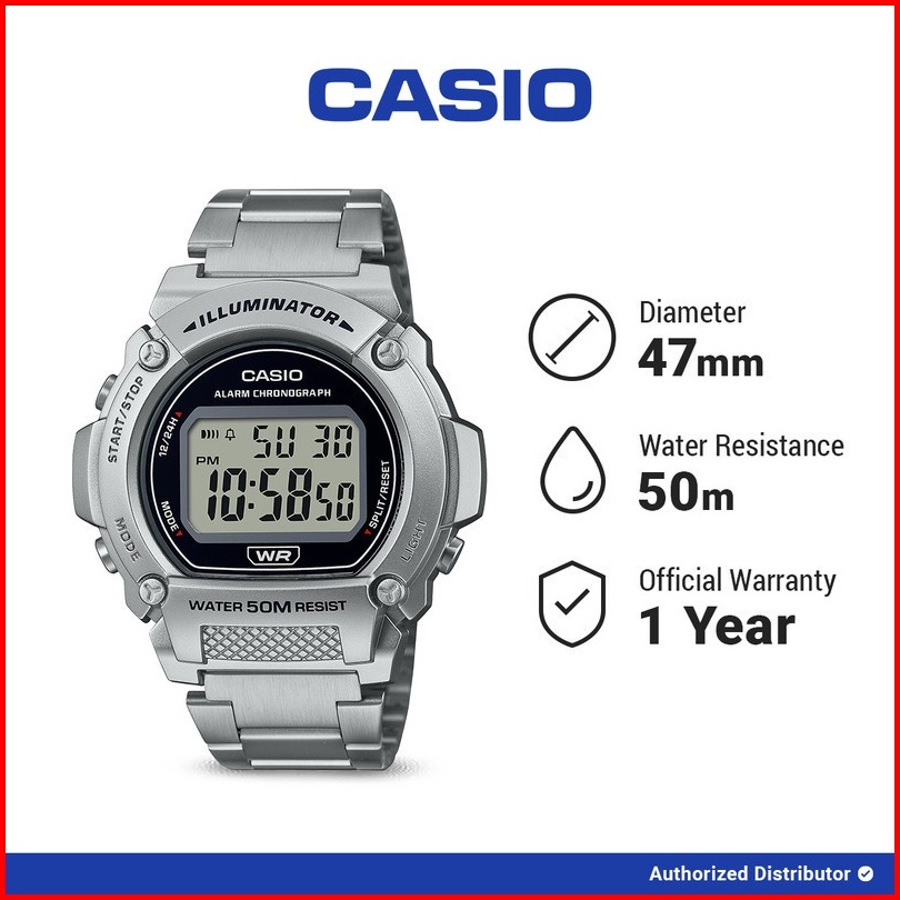 Jam Tangan Pria Casio General W-219hd-1avdf Original Digital Silver