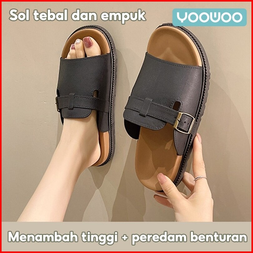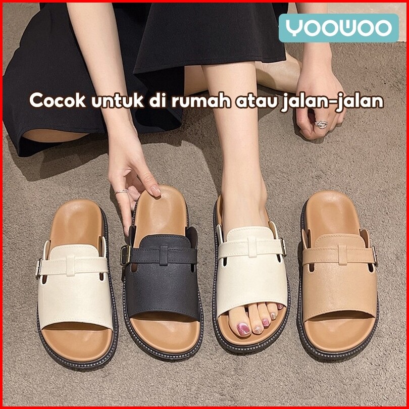 Yoowoo Sandal Wanita Sandal Slip On Wanita Kekinian Sandal Wanita Terbaru 2025 Sandal Wanita Buckle Stylish