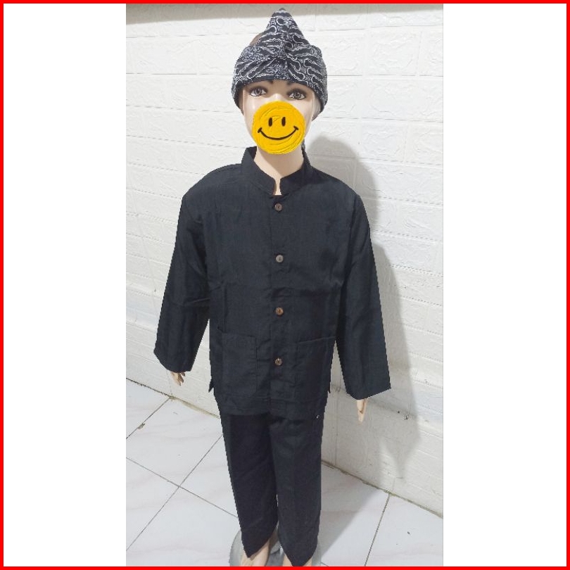 Setelan Pangsi Anak Gratis Iket Kepala Bahan Bestwey Hitam Polos