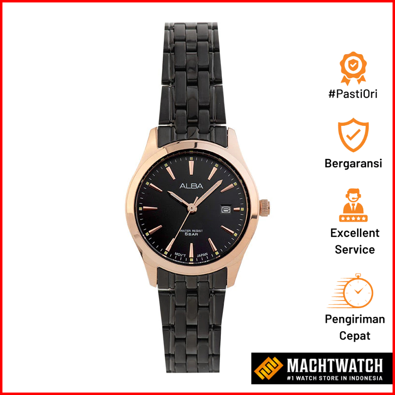 Time Baruan Jam Tangan Wanita Alba Ah7bm6x1 Ladies Black Dial Black Stainless Steel Strap