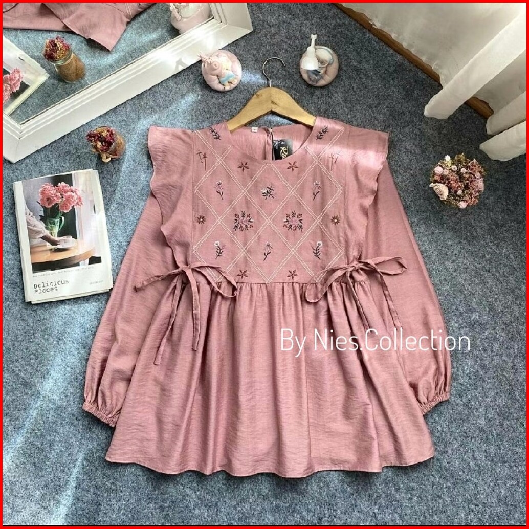 Maomao Blouse - Ukuran S M L Xl Xxl - Atasan Wanita Jumbo Bahan Polo Linen - Ld 120 110