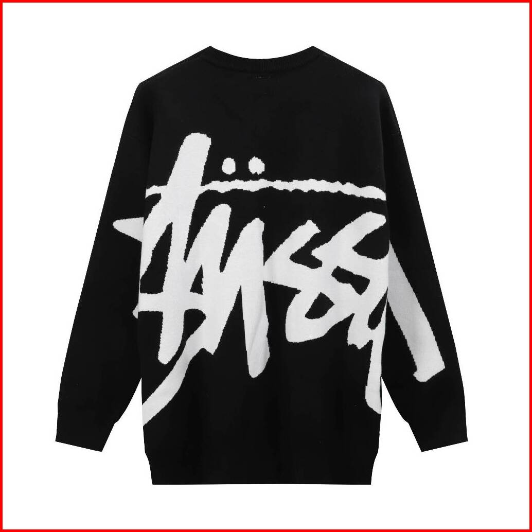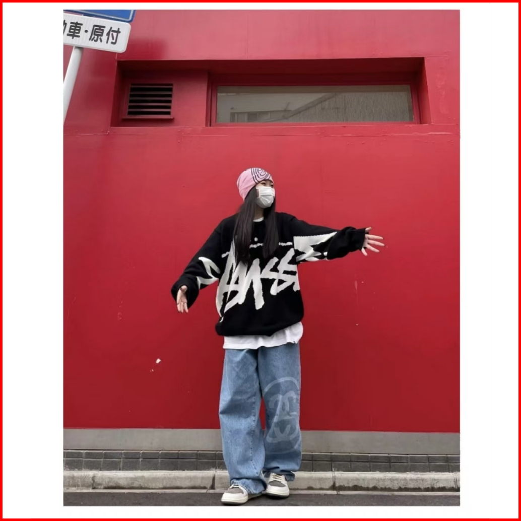 Dark Icon Surat Besar Jacquard Sweater Oversized Pria Wanita Pullover Pakaian Rajut Pakaian Hitam Merah Muda