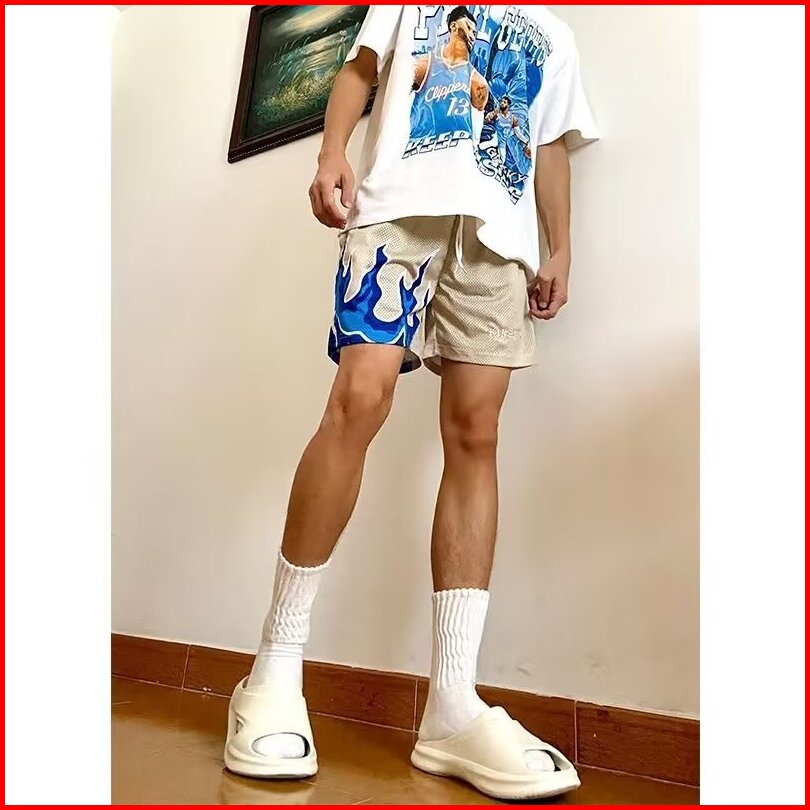 Dark Icon Flame Print Jersey Material Quck Dry Sport Shorts For Men Summer Beach Shorts 3 Colors