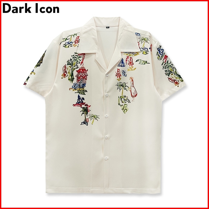 Dark Icon Kemeja Cowok Lengan Pendek Button Down Collar Vintage Men S Shirts Streetwear Clothing