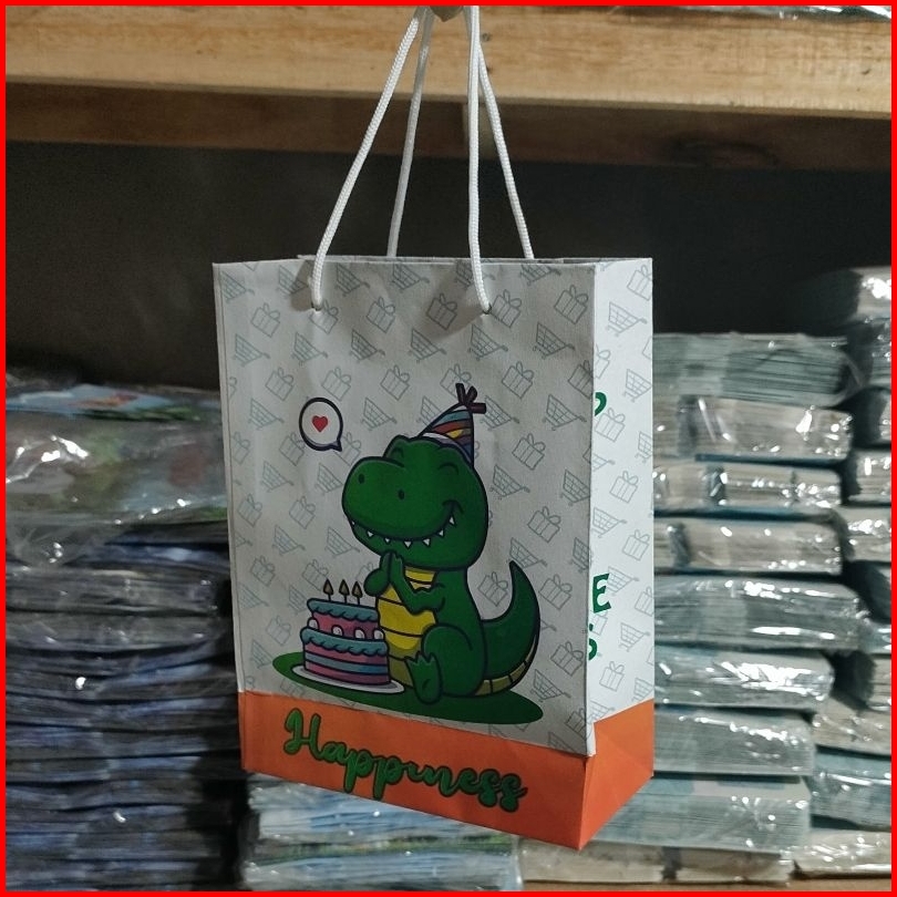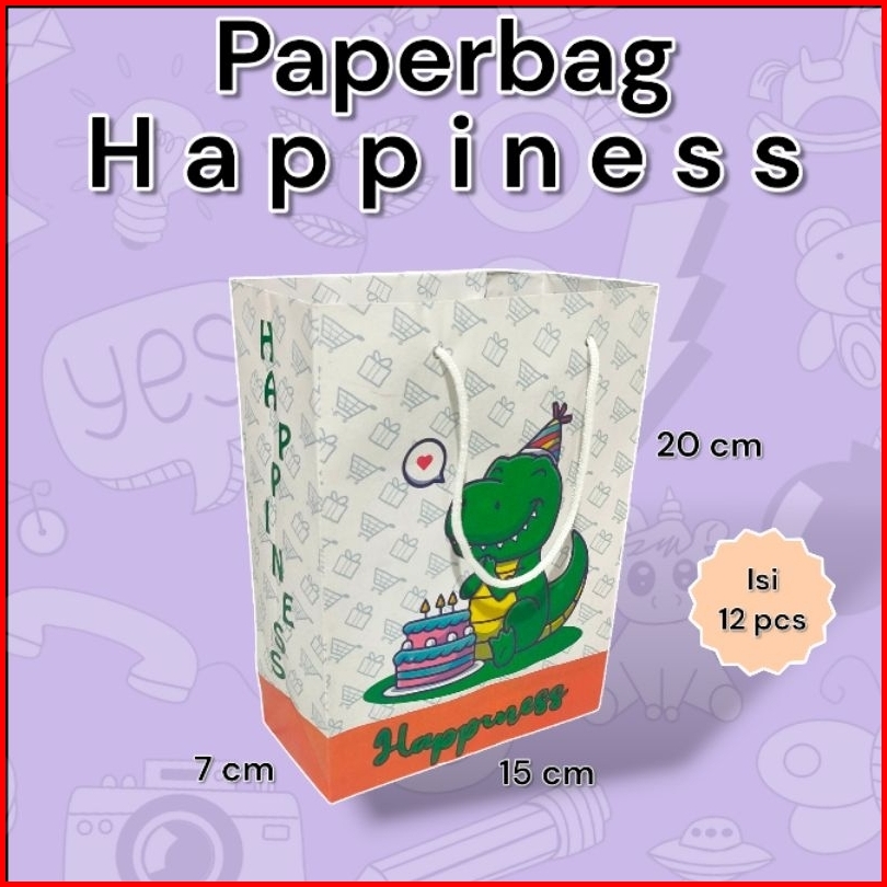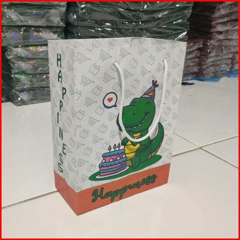 Paper Bag Happiness Motif Dino Lusinan Isi 12 Pcs Ukuran 15 7 20 Cm