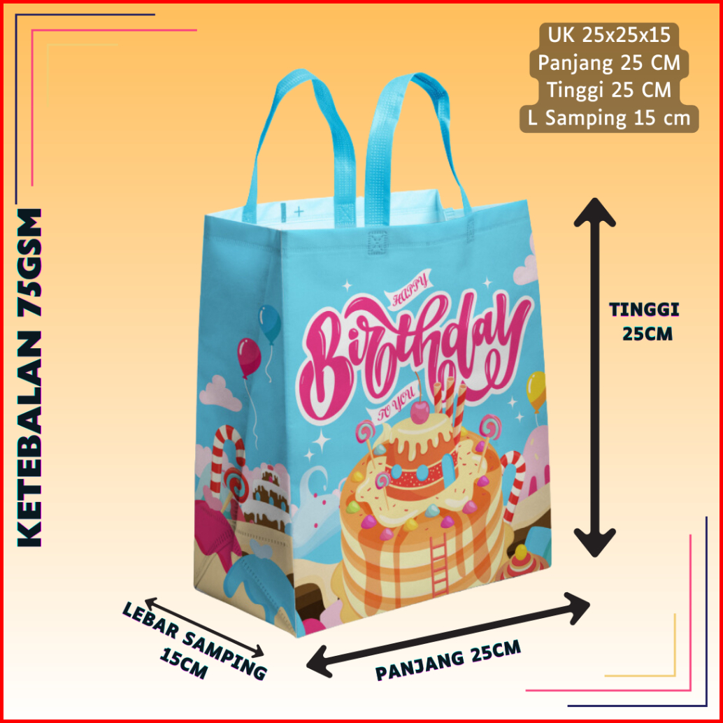 Lusinan 12 Pcs Tas Souvenir Ulang Tahun Anak Goodiebag Motif Kartun Premium Hampers Goodie Bag