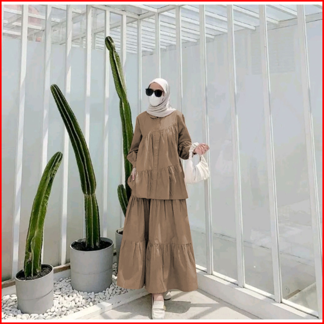 Byqueen Setelan Oversized Terry Set 2 In One Atasan Rok Busui Friendly Linen Rami