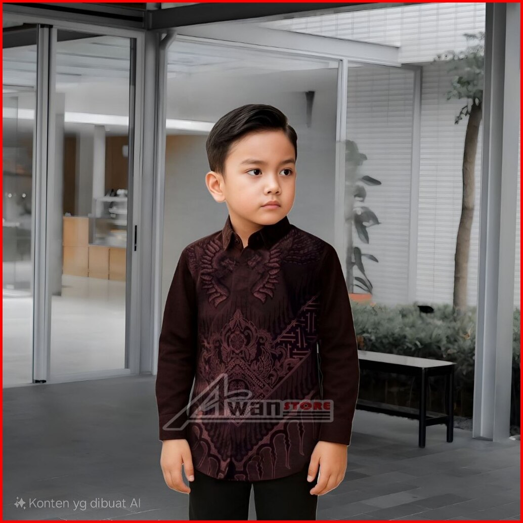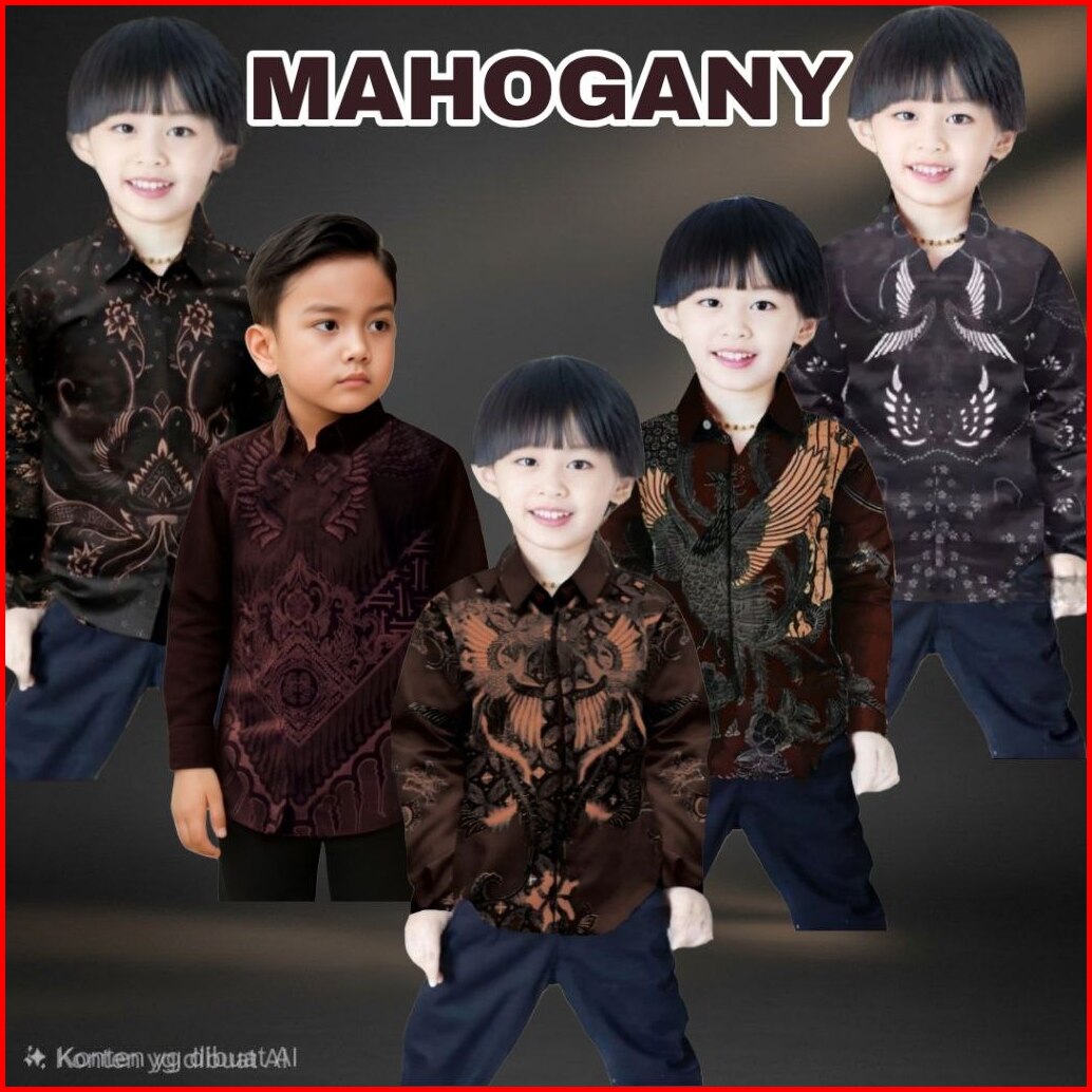 Kemeja Batik Anak Laki Laki Warna Mahogany Umur 1-13th Batik Anak Lengan Panjang Trendy Masa Kini