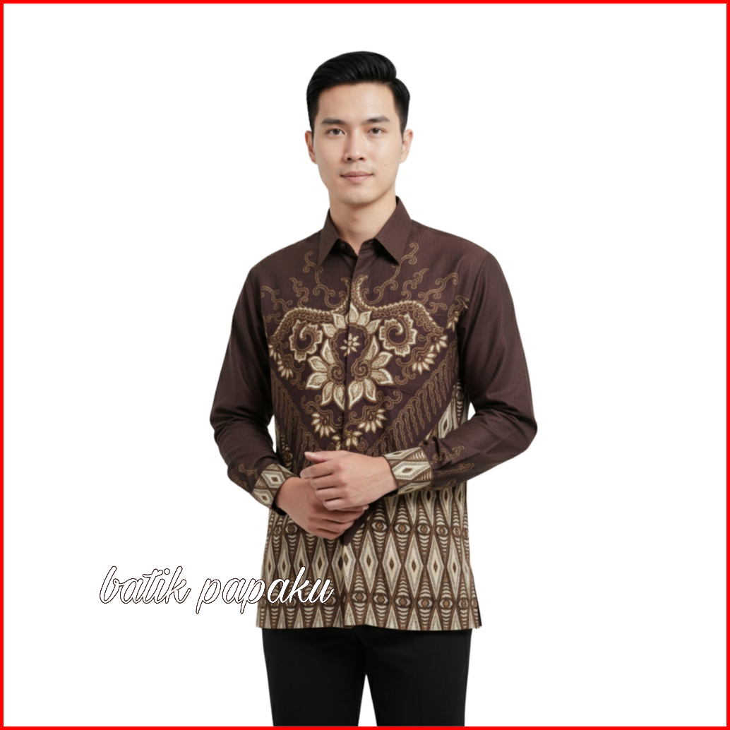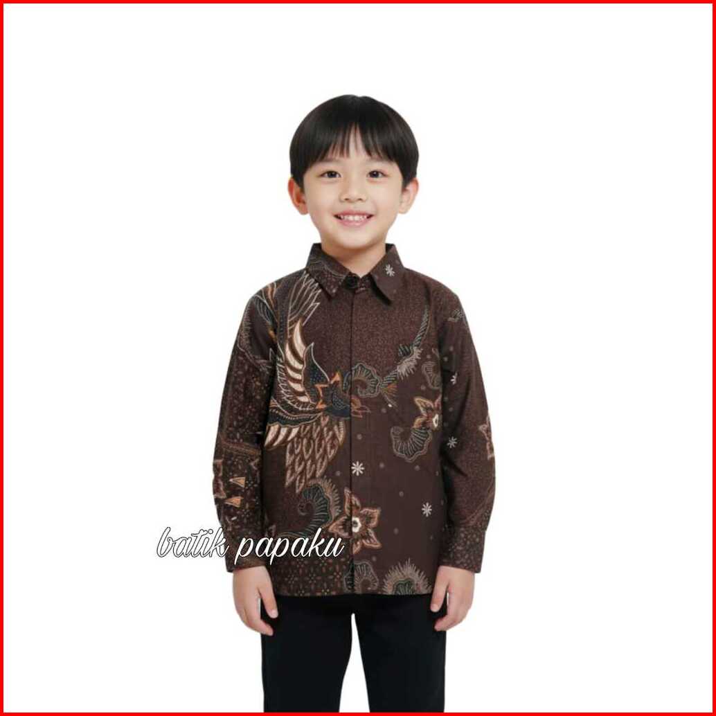 Batik Papaku Kemeja Batik Anak Laki-laki Warna Coklat Mahogany Mahony Lengan Panjang Batik Ayah Dan Anak Cowok Lesmana